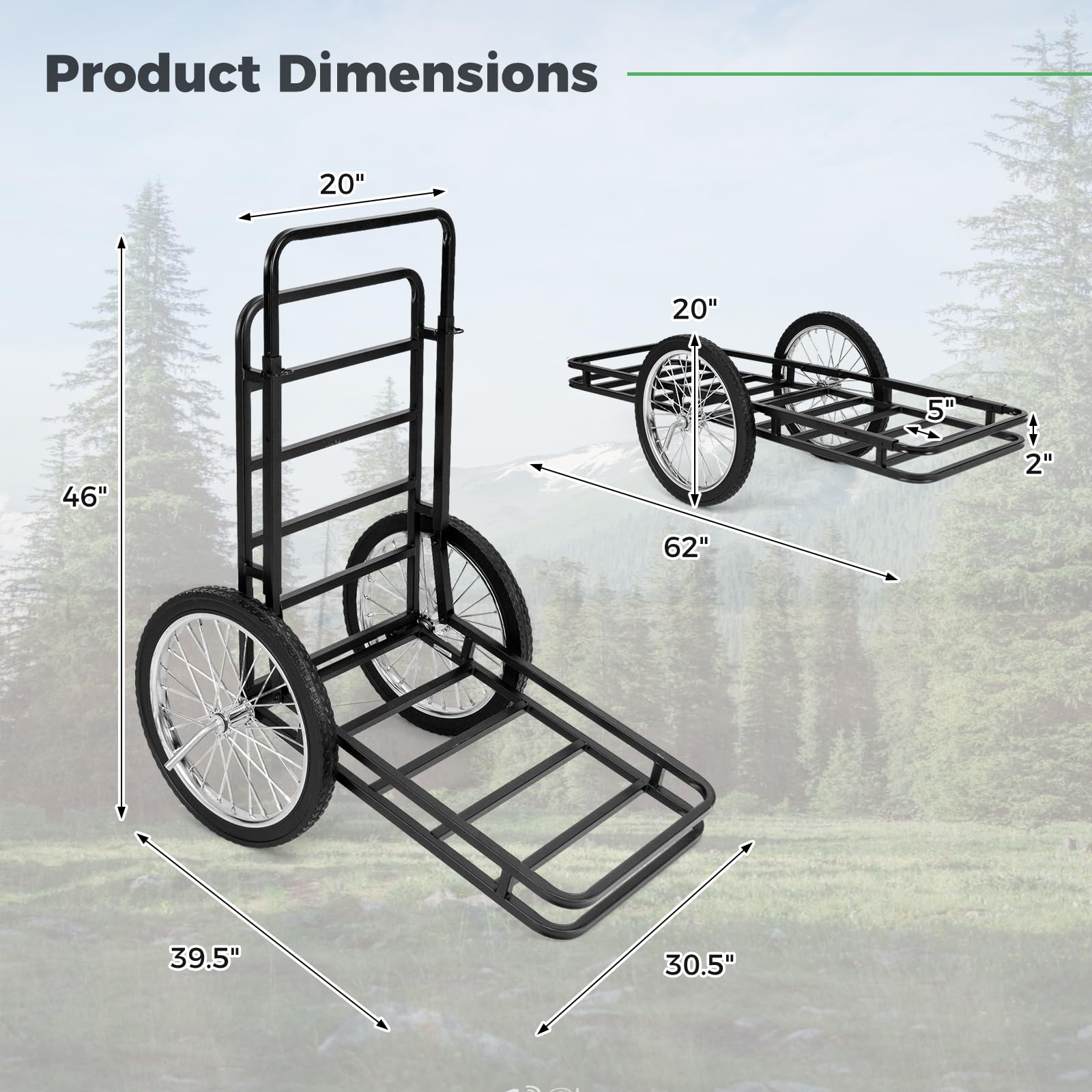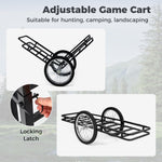 Our deer game cart is ideal for hunters to haul games, gear or hunting equipment from the field to truck. Moreover, you can use it to carry firewood as you need. This hunting cart is constructed from solid steel tubes, making it stable and strong enough to transport trophy game weighing up to 550 lbs. And the large 20’’ wheels with rubber tire are wear-resistant and sturdy, which are suitable for various roads and ideal for hunting in the forest. What's more, t his deer game cart can be easily folded, which is convenient to carry or storage.