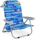 GYMAX Beach Chair, 330lbs Backpack Lounger with 5-Position Backrest, Storage Bag, Side Pocket