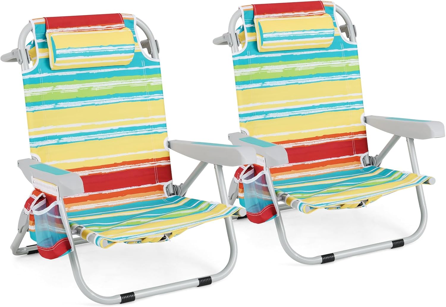 - Enjoy Sunshine & Breeze: Ready for beach trip? Check out GYMAX backpack beach chair for adults. 5 Backrest position for sit, recline and lie. Removable headrest offer support for your neck while armrests ensures comfortable lounge experience.