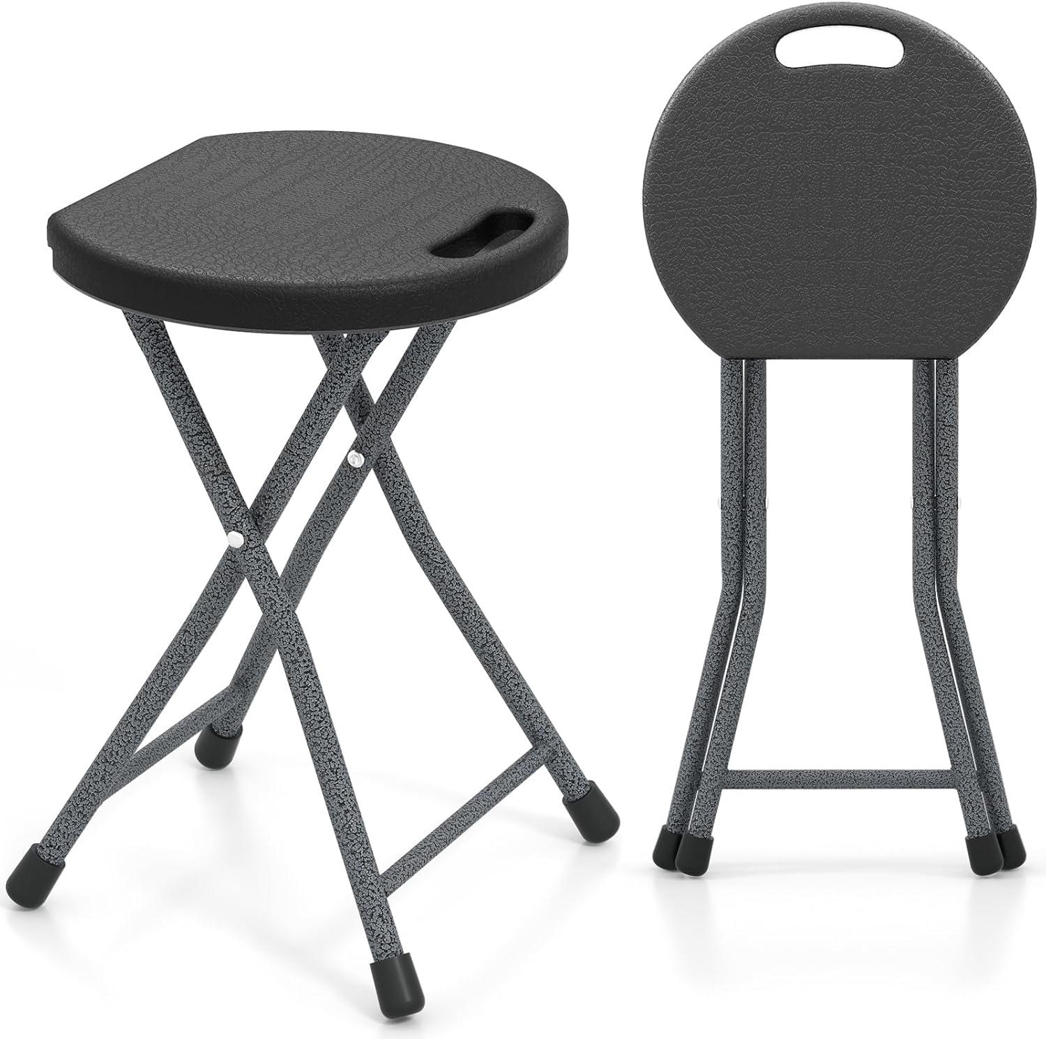 GYMAX Folding Stool, 18in Portable Collapsible Bar Stool with Handle & Steel Frame