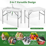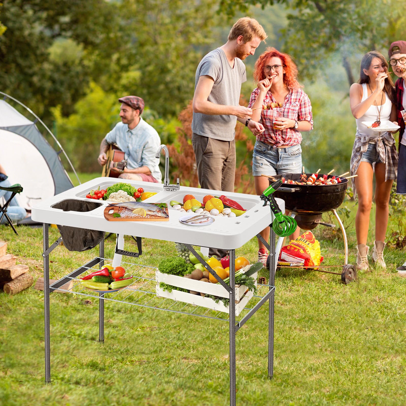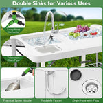 - 2-in-1 Versatile Design: In addition to a fish cleaning table, it can be converted into an outdoor picnic table with its covertable sinks and removable faucet. As such, this multifunctional washing table is perfect for avid anglers and picnickers alike, serving as an ideal companion for your outdoor activities like fishing, camping and picnic.