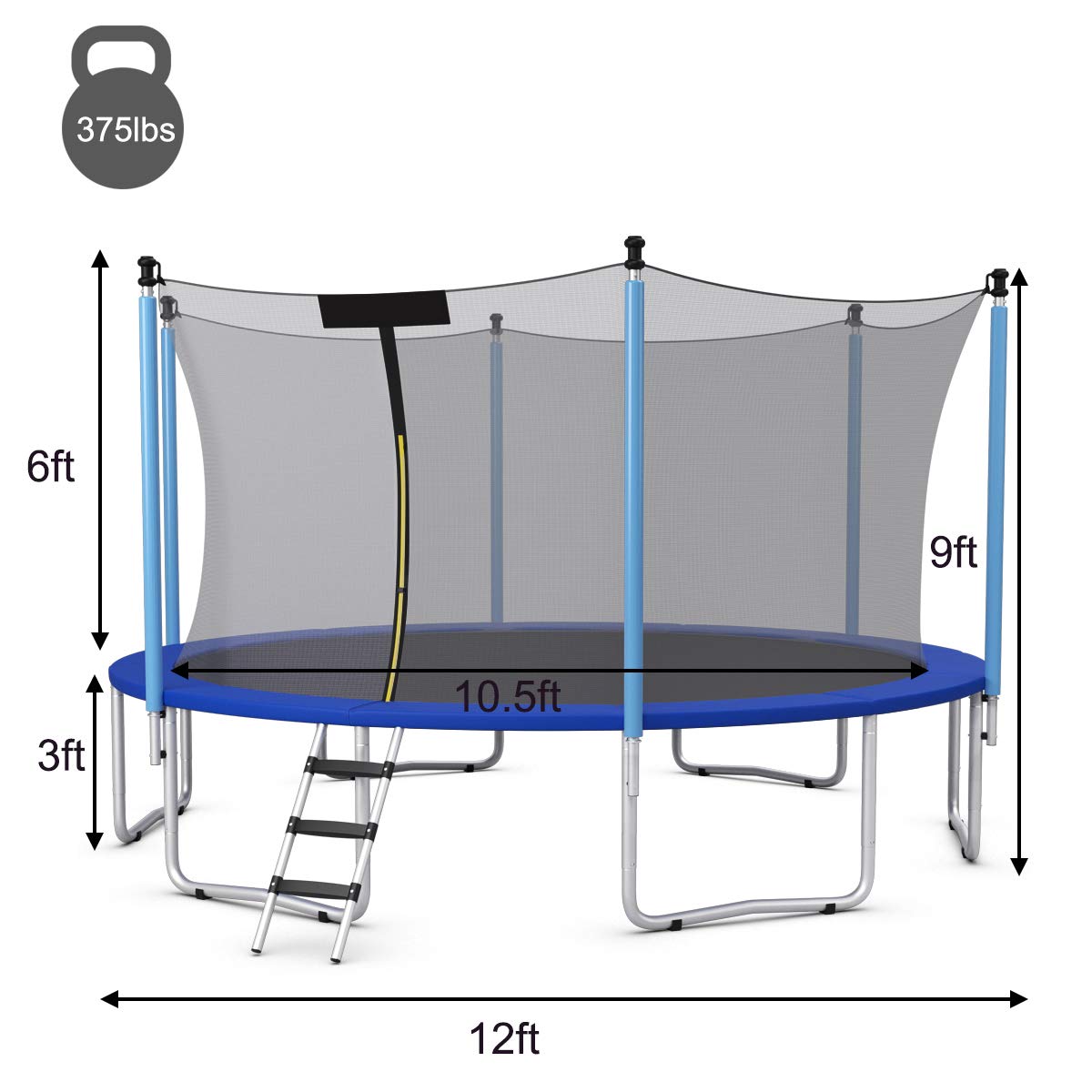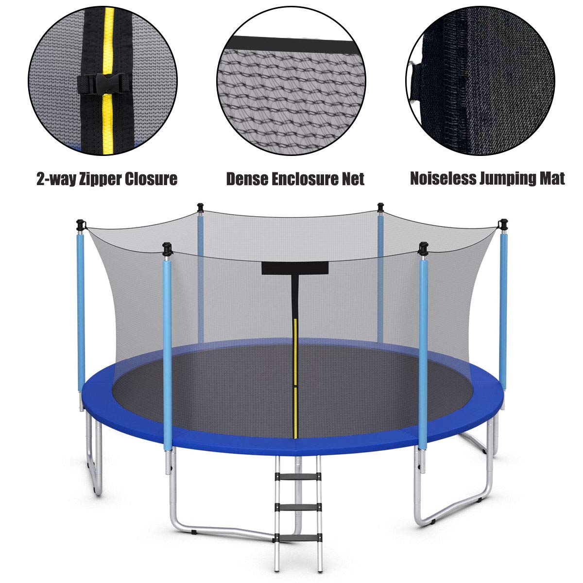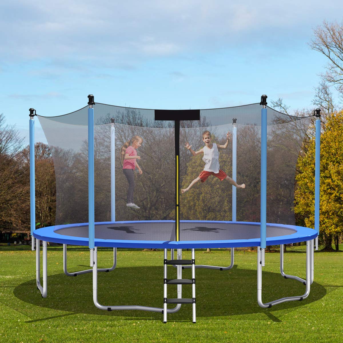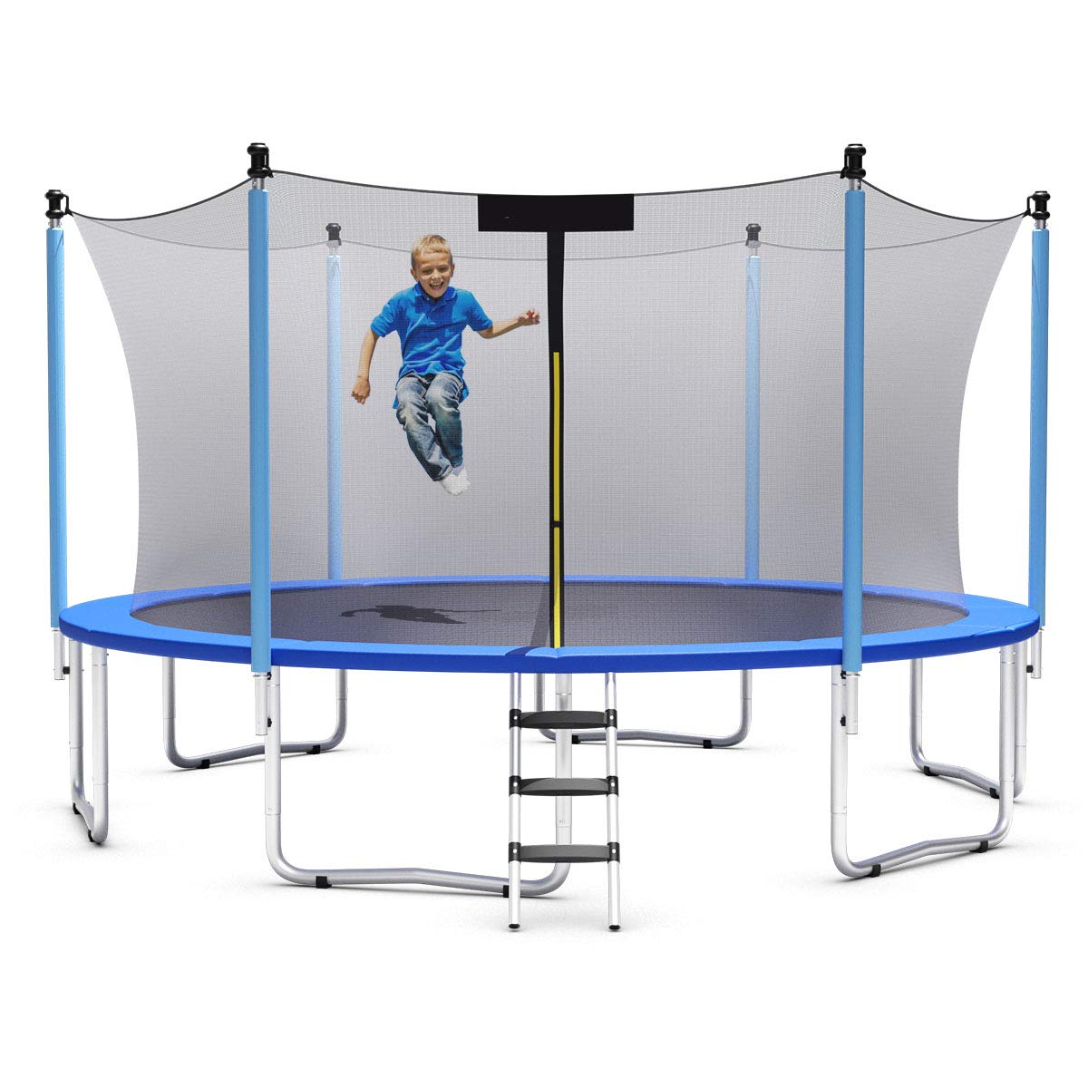 12FT 14FT 15FT Kids Trampoline with Safety Enclosure Net Ladder & Spring Cover
