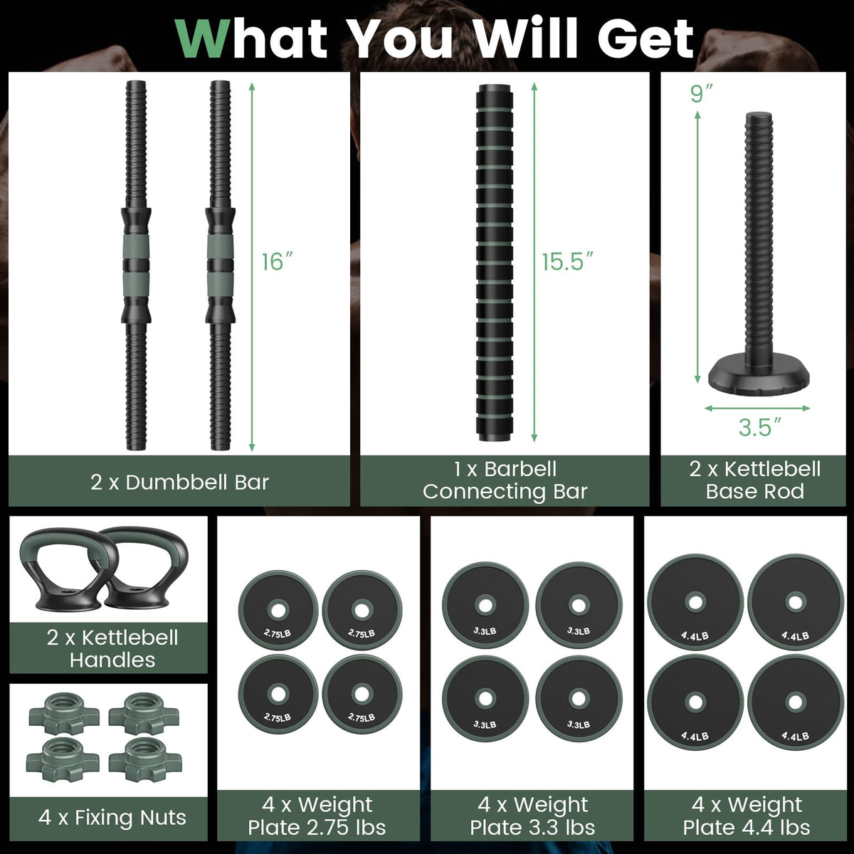 Adjustable Dumbbell Set 4 in 1 Free Weight Set with Connector