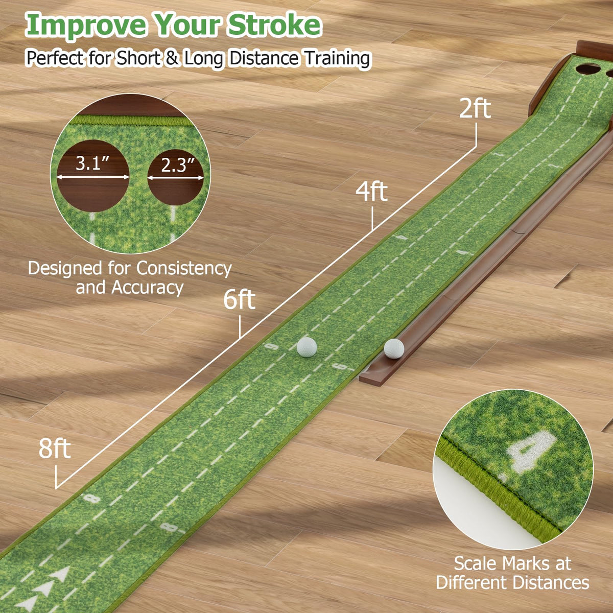 Scale marks at different distances to elevate your putting