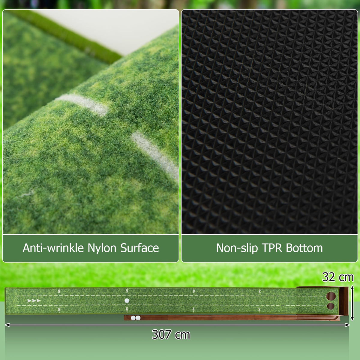 Anti-wrinkle nylon surface for realistic putting experience
