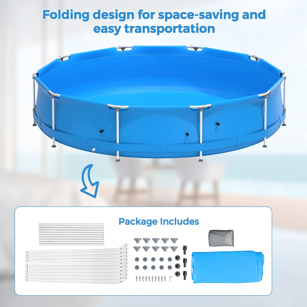 - Convenient Pool Cover: Equipped with a pool cover, GYMAX outdoor pool enables you to enjoy cool summer with less water. No need to fill the pool every time you use, as the cover will ensure a cleaning pool for you. With folding design, this frame swimming pool is easy to store when summer past.