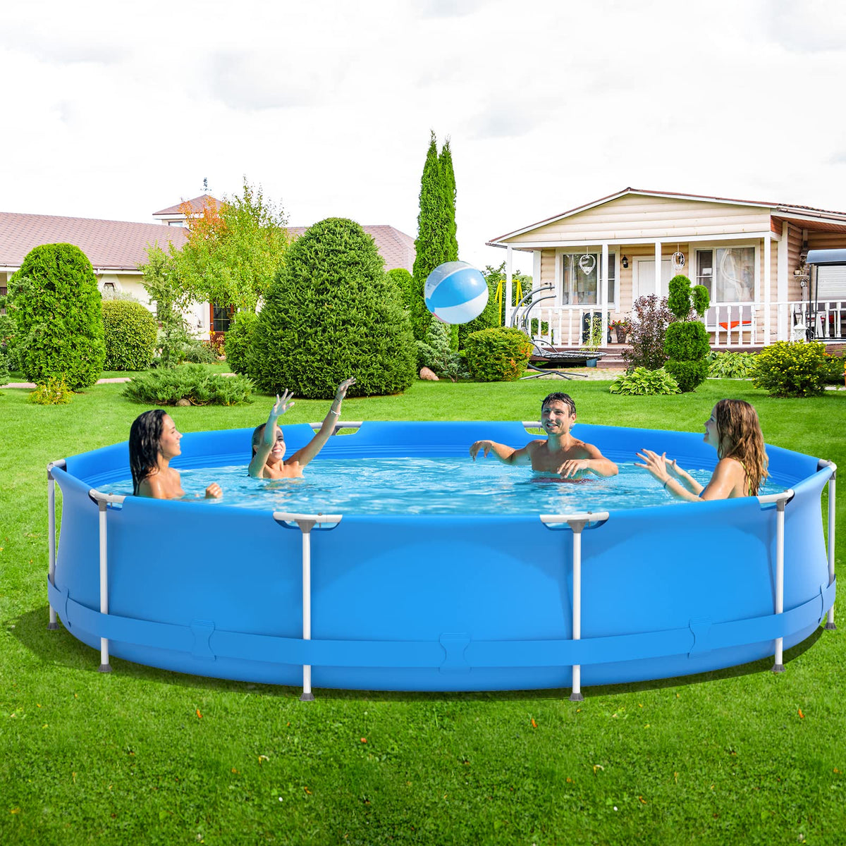 - Set up in Minutes: Here are what you need to do to set up this above ground pool: connect curve pipes together through the PVC pool to a circle frame, connect straight pipes, and put on anti-slip foot pads. Easy peasy, lemon-squeasy.