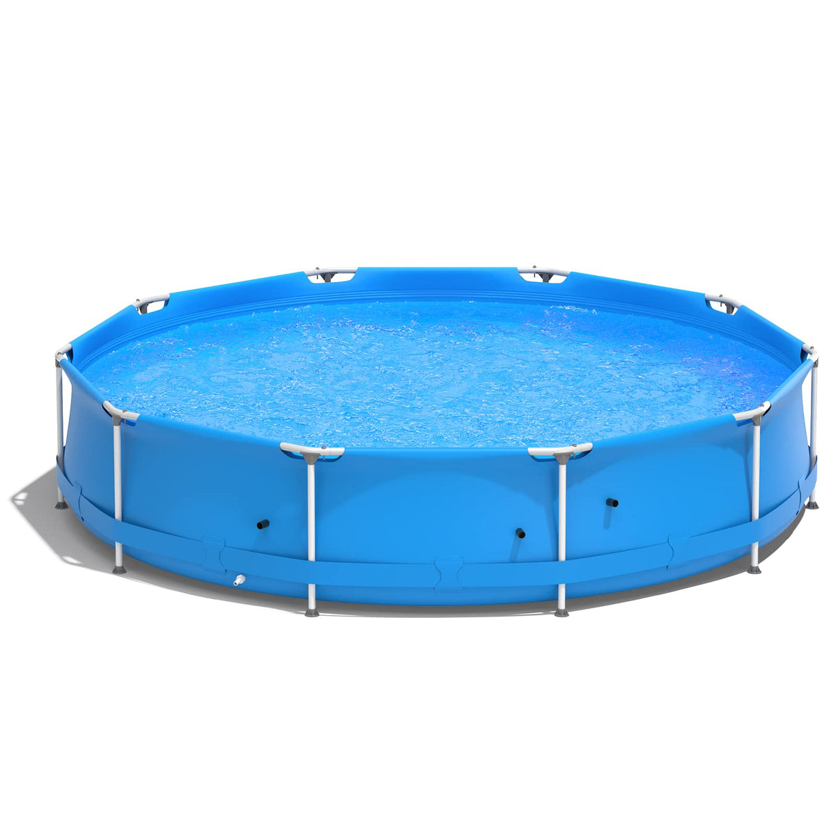 - Family Size Swimming Pool: Measuring 12’x 2.5' when set up, this above ground swimming pool could contain 3-4 adults at the same time. Meanwhile, one filter inlet and two filter outlets can be used with 600+ gal/h pump (pump not included), helping to control water level for kids.(Suitable for age over 5)