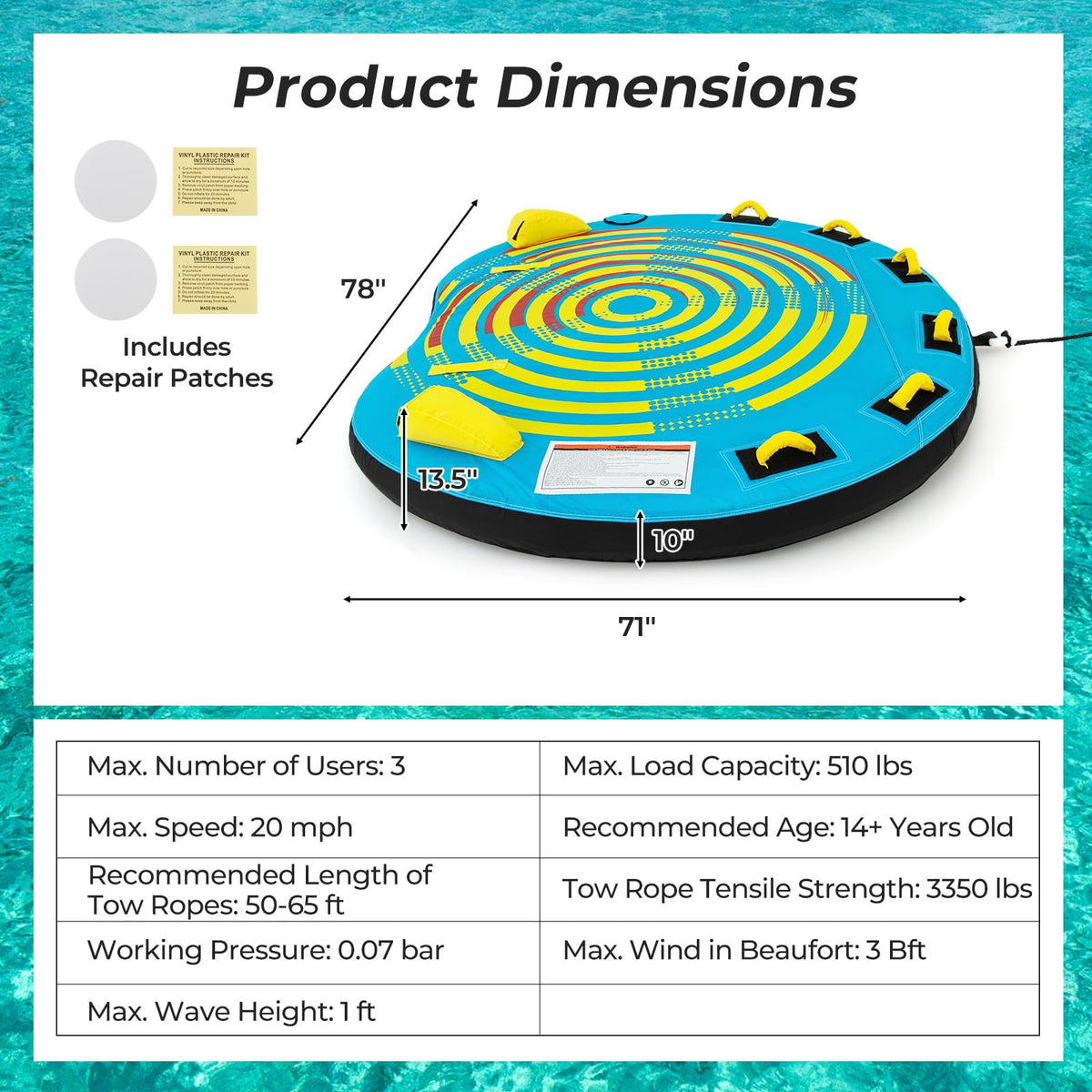 GYMAX 2/3 Riders Inflatable Boat Tube for Water Sports to Pull with Padded Grip