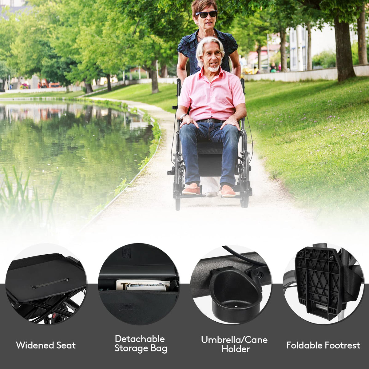 - Humanized & Ergonomic Design: Equipped with a detachable storage bag, you can take personal belonging effortlessly with this rollator. The cane holder allows you to put your cane or umbrella aside safely. Meanwhile, the widened seat will create a larger and more stable seat when serving as a wheelchair.