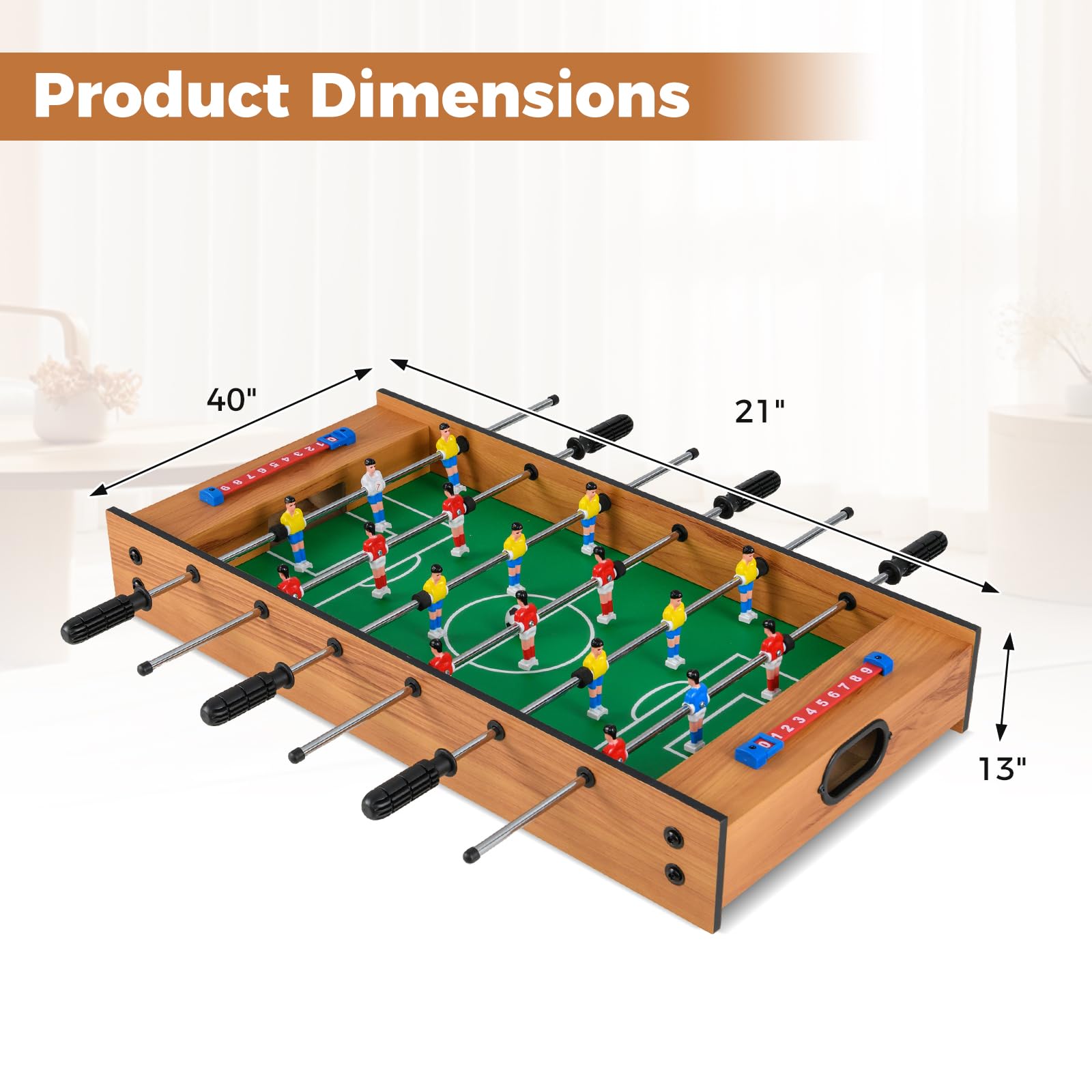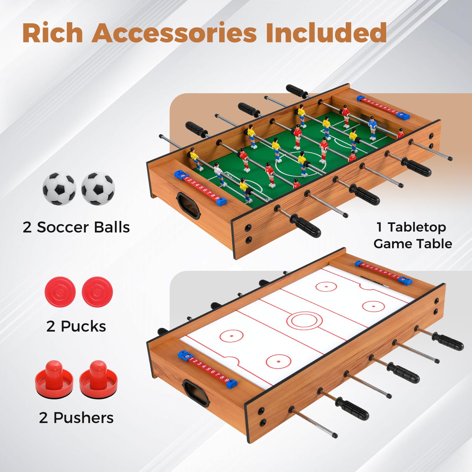 This 2-in-1 tabletop game table allows you quickly switch between foosball and hockey, delivering flexible fun for everyone. With a compact 27" design, it fits easily into any room and is light enough to move wherever you like. The set comes completely with 2 soccer balls, 2 pushers, and 2 pucks, making it engaging for players of all ages. Whether it’s party time, family game night, or an office break—this combo game table is the perfect addition.