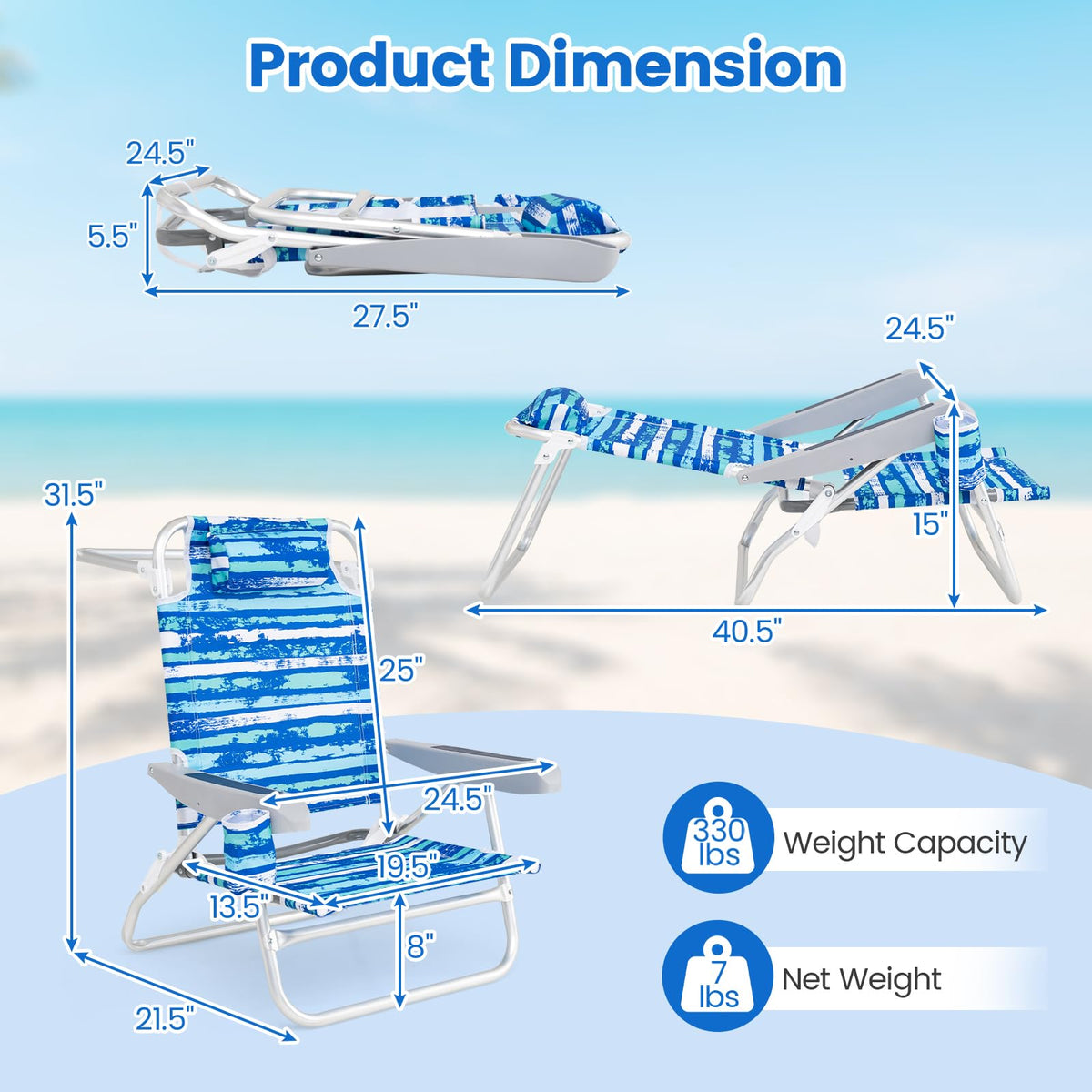 Each Chair Net Weight: 7 lbs