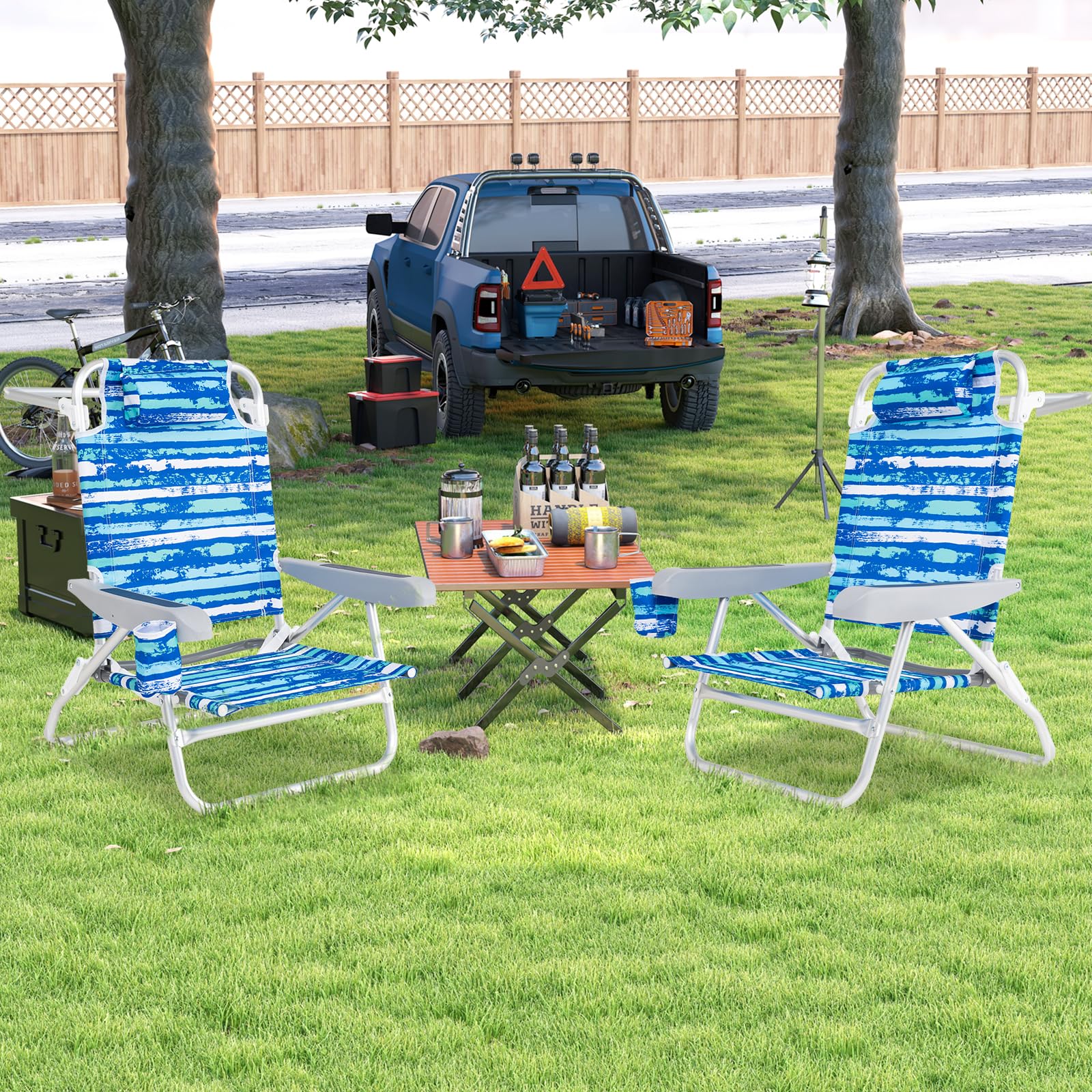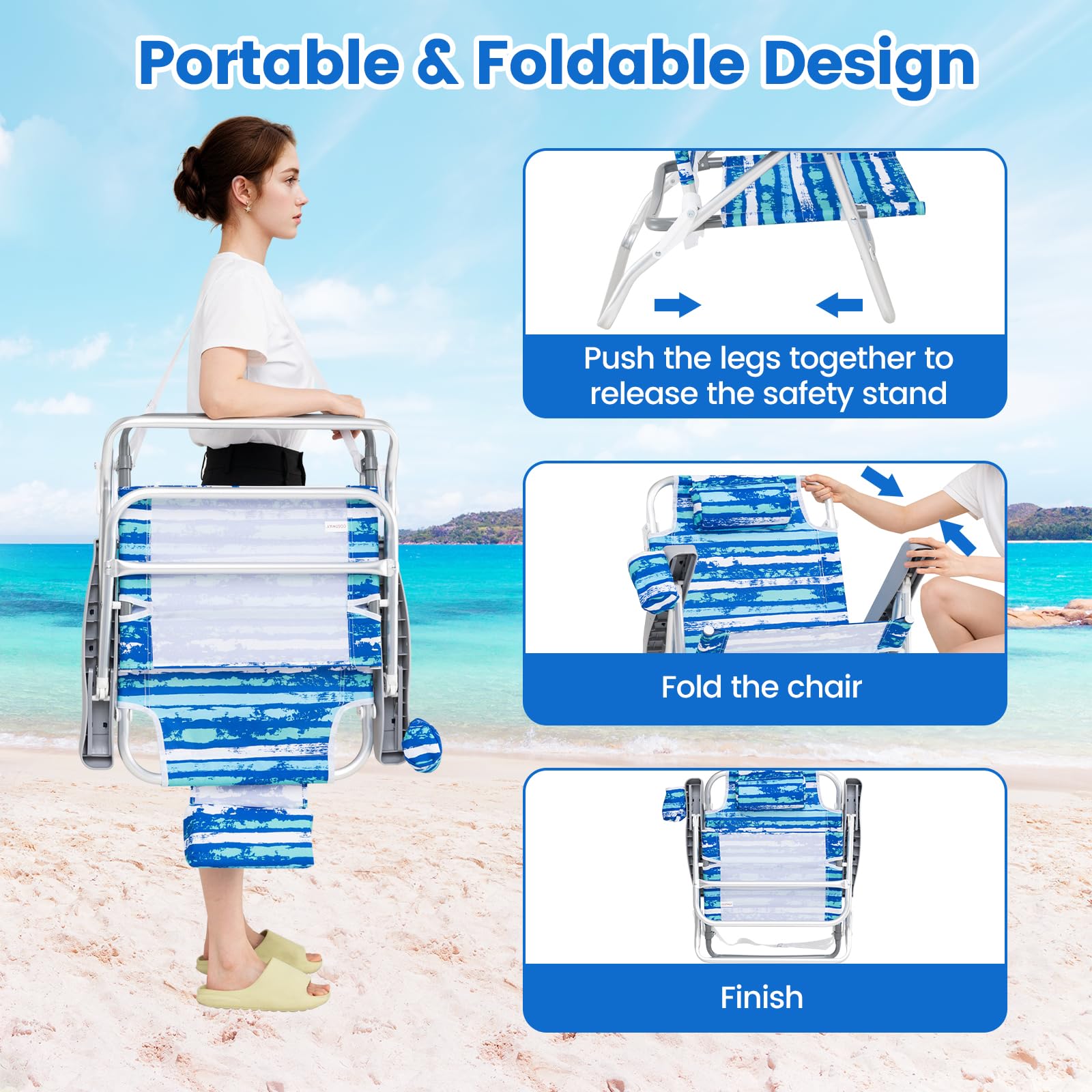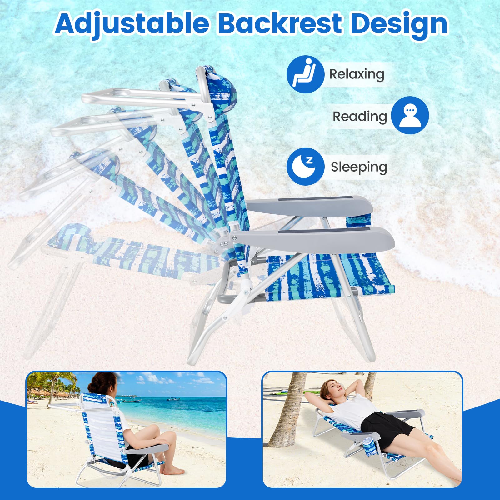 GYMAX 2/4 Pack Folding Beach Chair with Adjustable Positions and Head Pillow