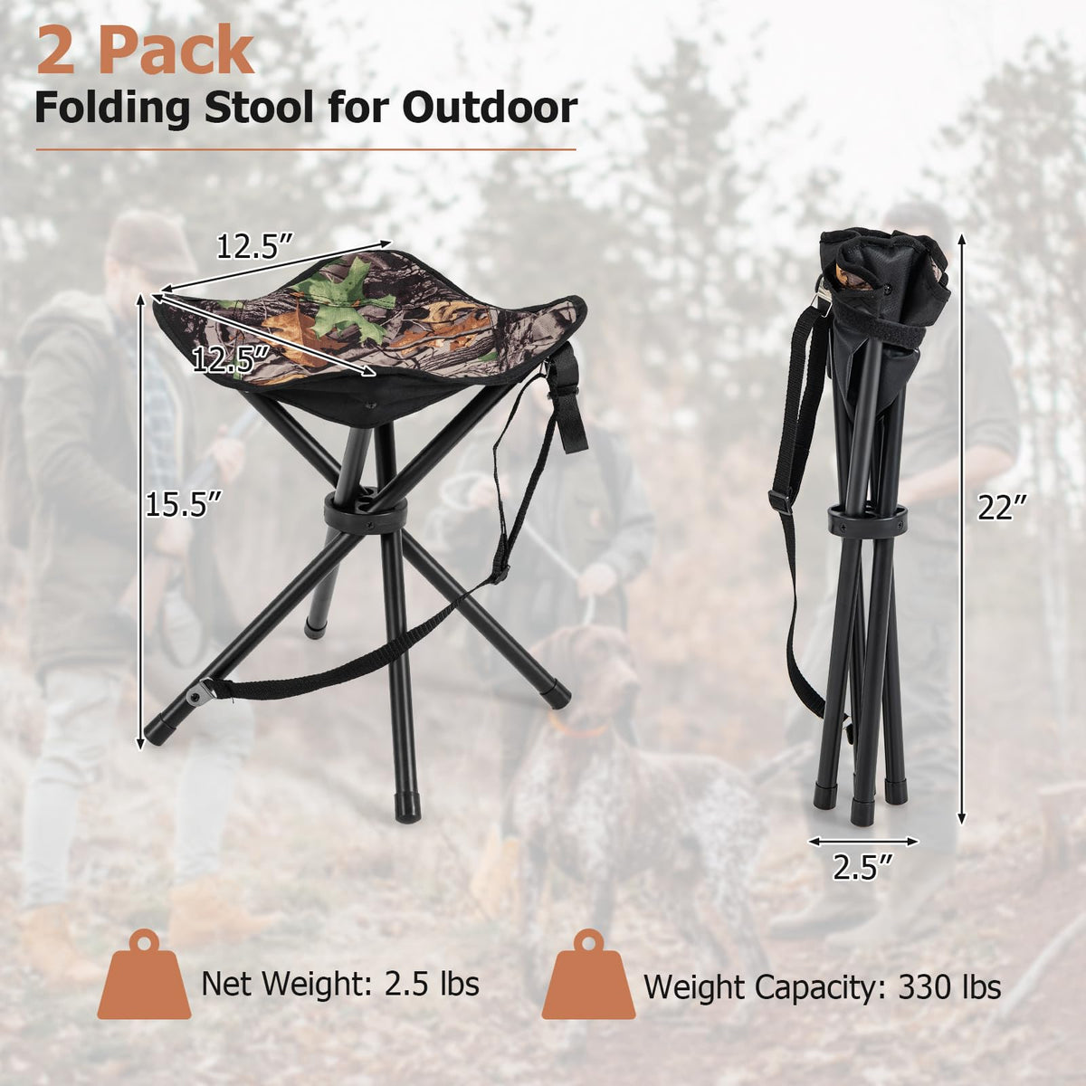 GYMAX 2 Pack Folding Stool, Portable Tripod Lightweight Hunting Stool with Shoulder Strap