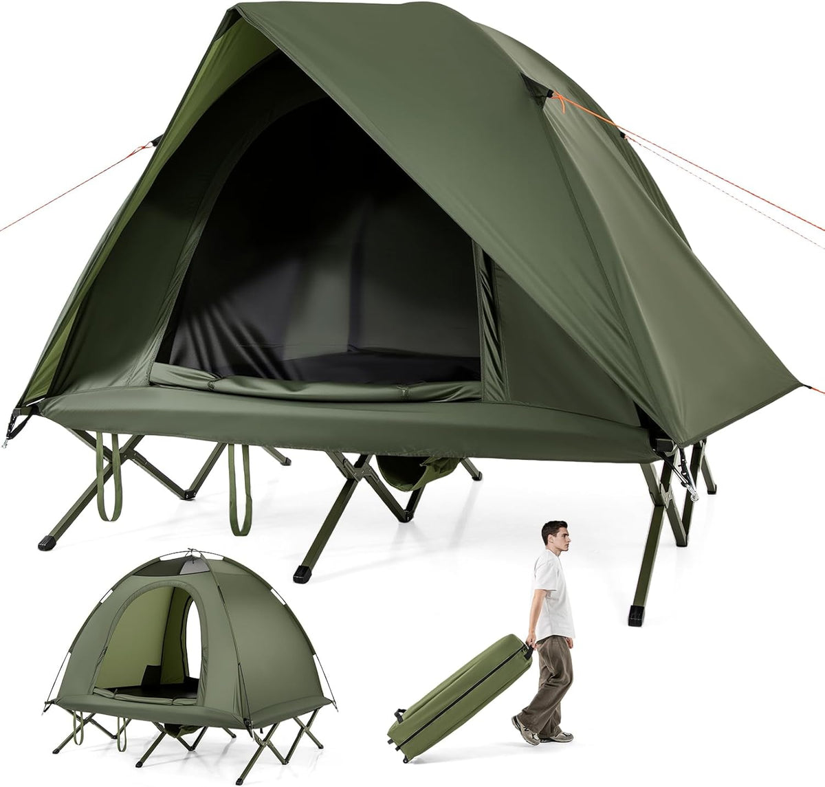 GYMAX 2-Person Tent Cot 3 in 1 Folding Off-Ground Cot Bed