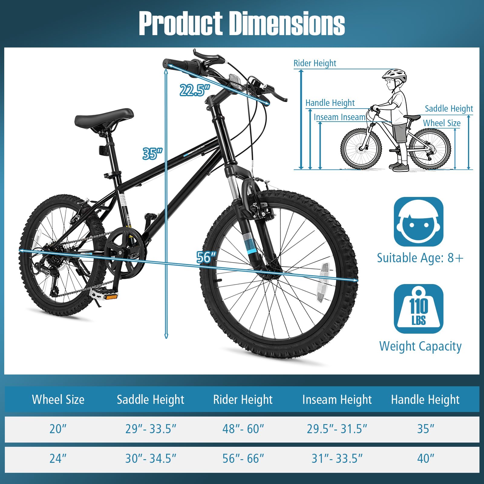 GYMAX 20 24 Inch Kids Mountain Bike Kids Bicycles for Boys Girls