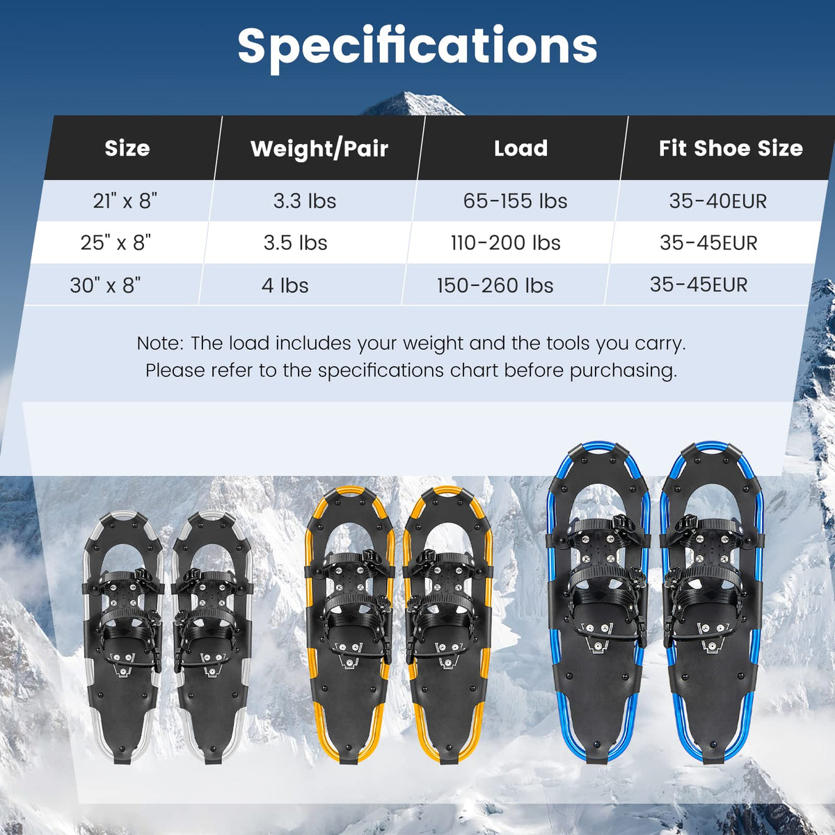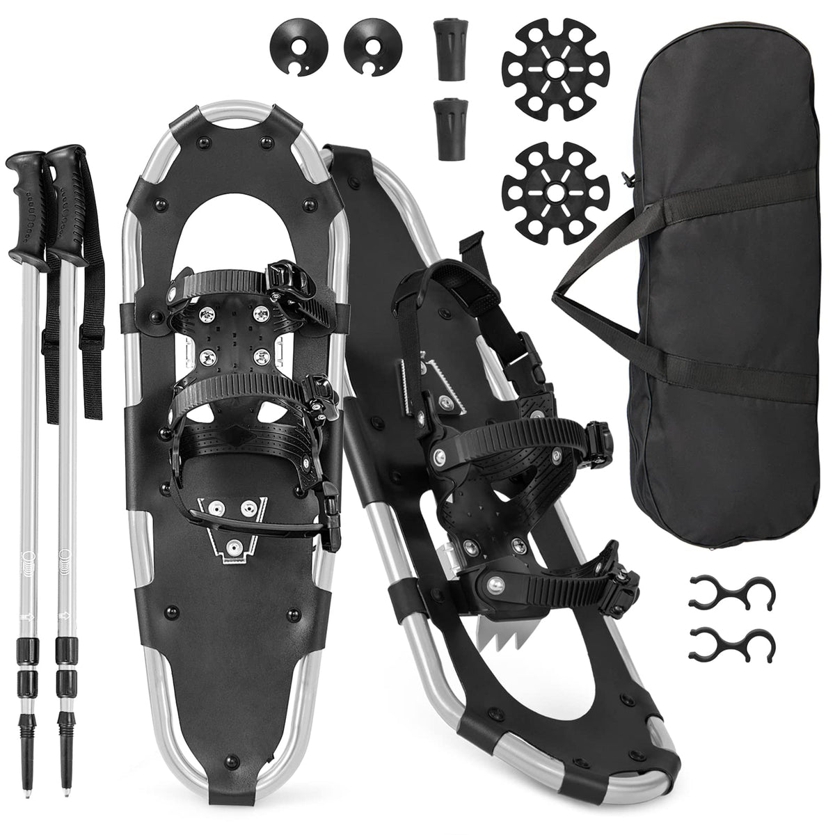 GYMAX 21/25/30 inch 3 in 1 Snowshoes Trekking Poles Bundle