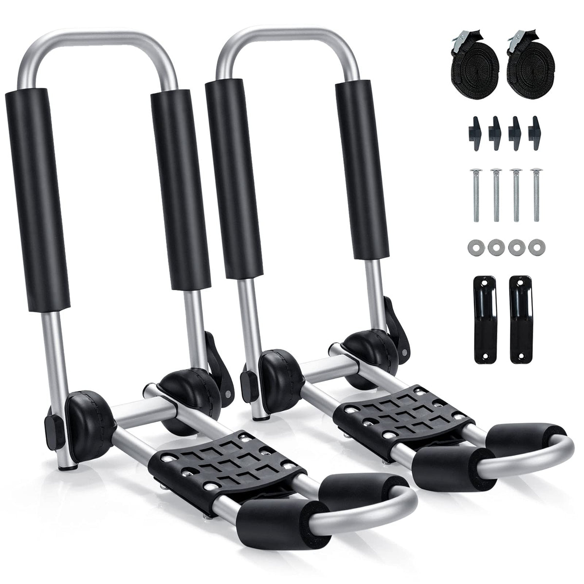 GYMAX 2Pcs J-Bar Kayak Roof Rack, Universal Foldable Kayak Carrier for Kayak