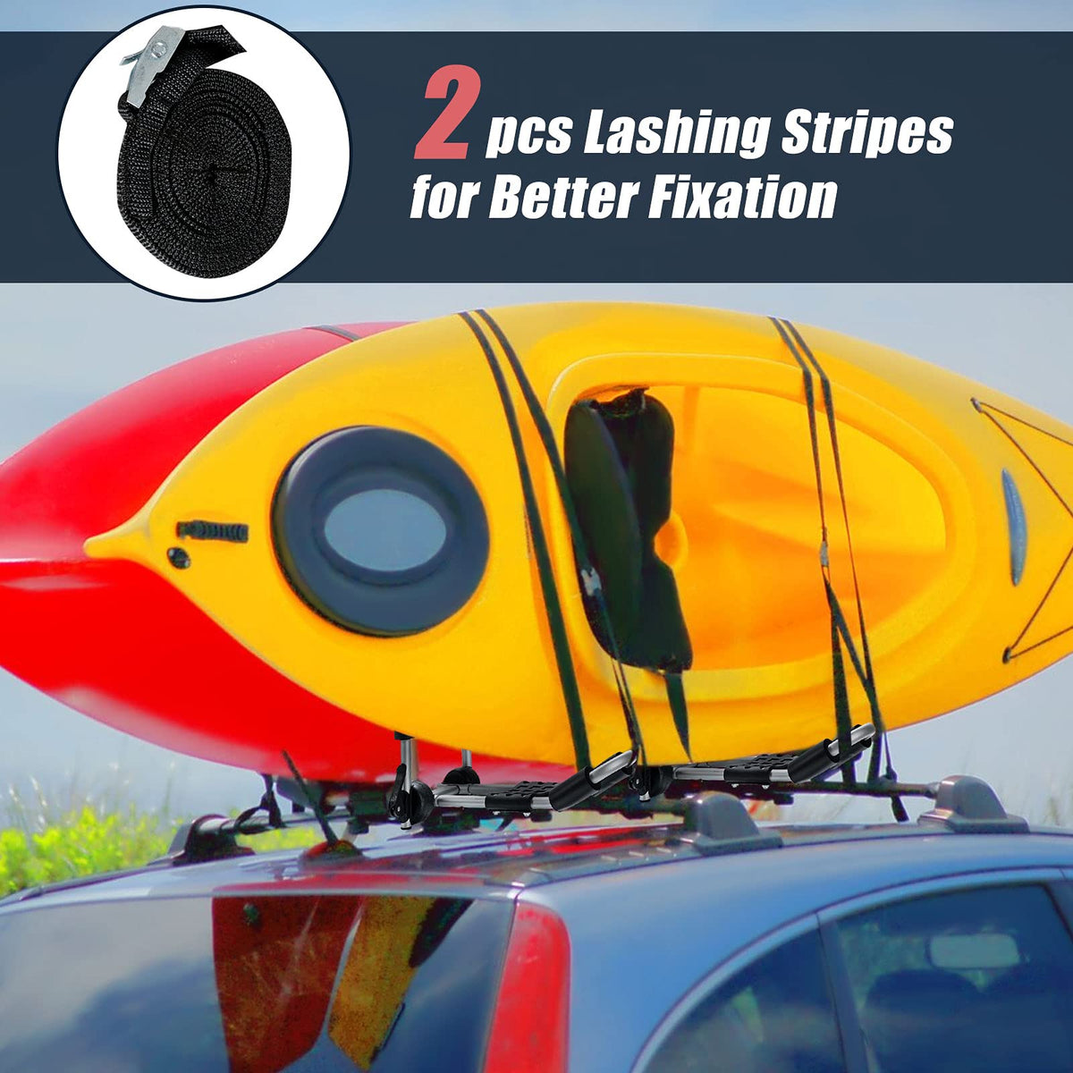 - Considerate Details & Safety Protection: The kayak racks are covered with soft sponge, which protects your boats from being scratched. With 4/2 lie down straps, you can achieve a firmer fixation when driving.
