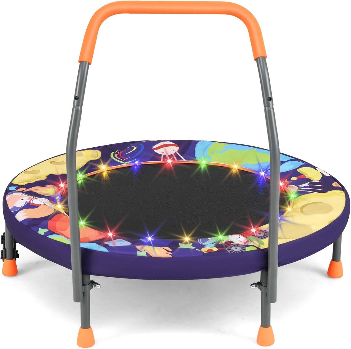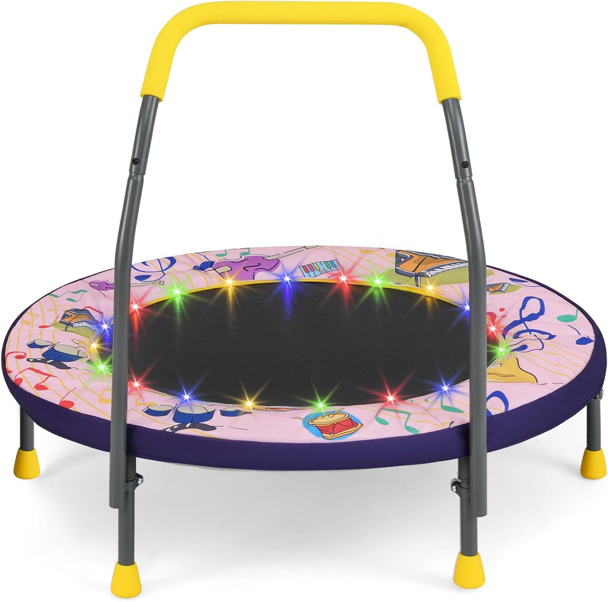 GYMAX 36" Toddler Trampoline with Lights Folding Springless ASTM Approved Small Kids