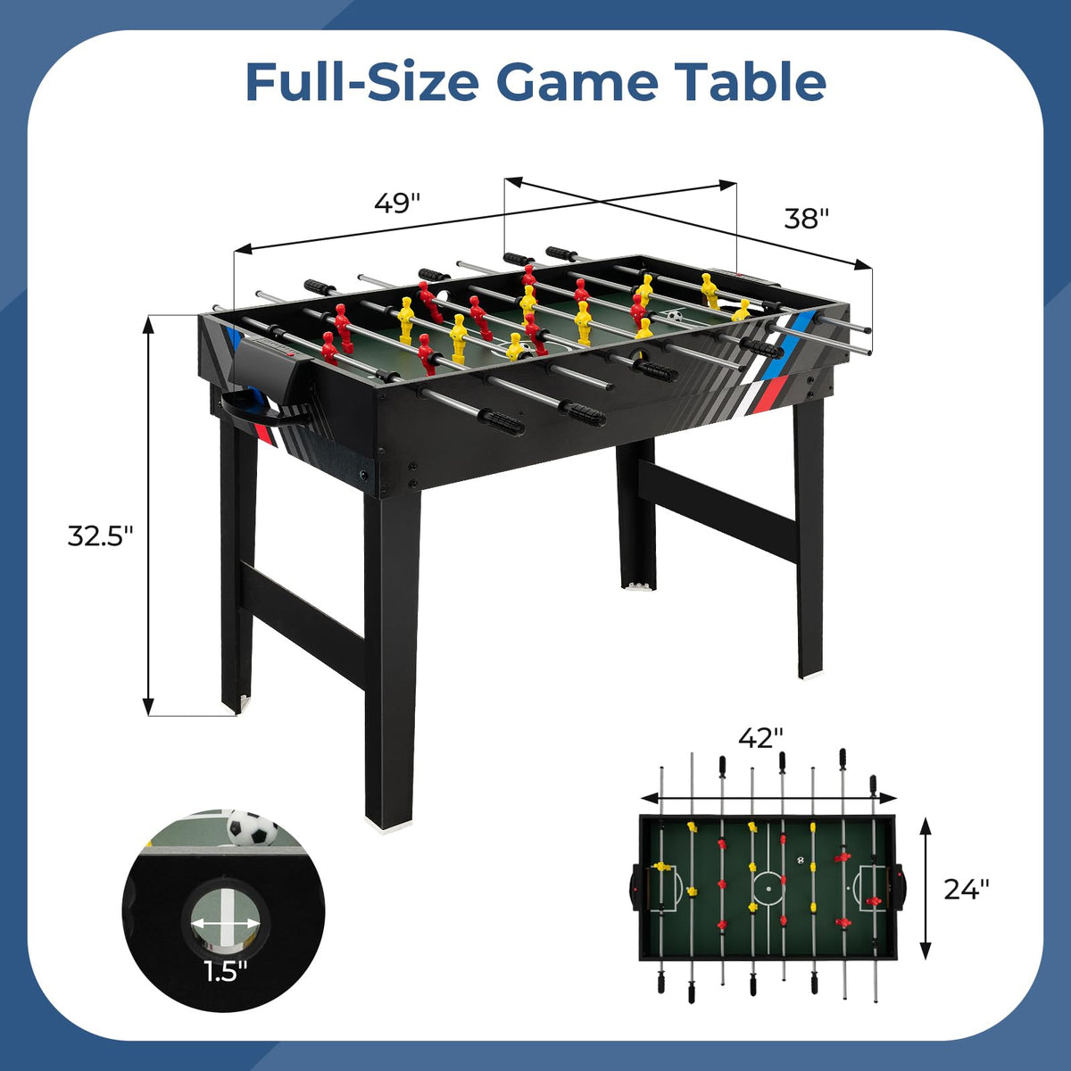 - Fun for All Ages, Ideal for Anywhere: With an overall dimension of 49" x 38" x 32.5" (L x W x H), this full-size game table is suitable for both kids and adults. It will be a great addition to various scenarios, such as home, office, pub and dormitory.