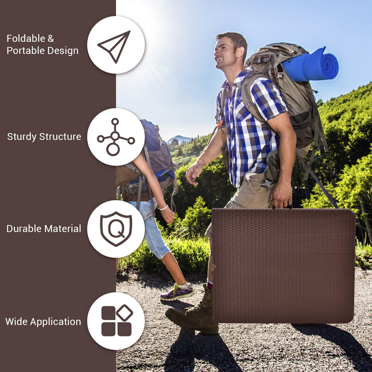 - 【Heavy Duty & Stable Camping Table】Consist of powder-coated steel frame and 1.5”thick tabletop, this folding table holds up to 330lbs.Safety lock and reinforced bars under the table offer reliable support, while anti-slip foot pads improve its overall stability.