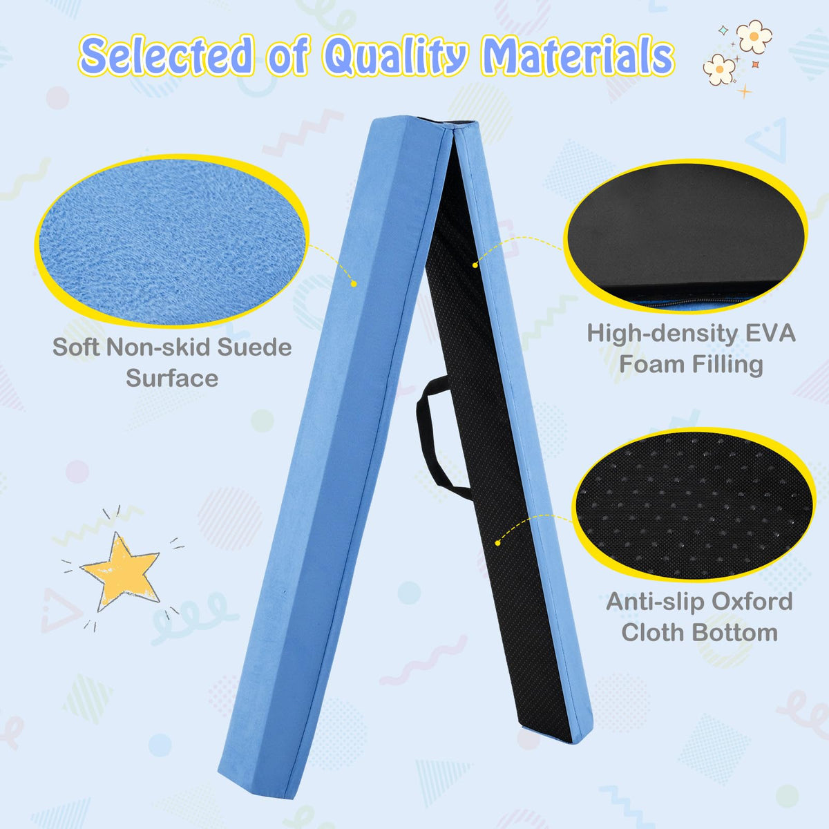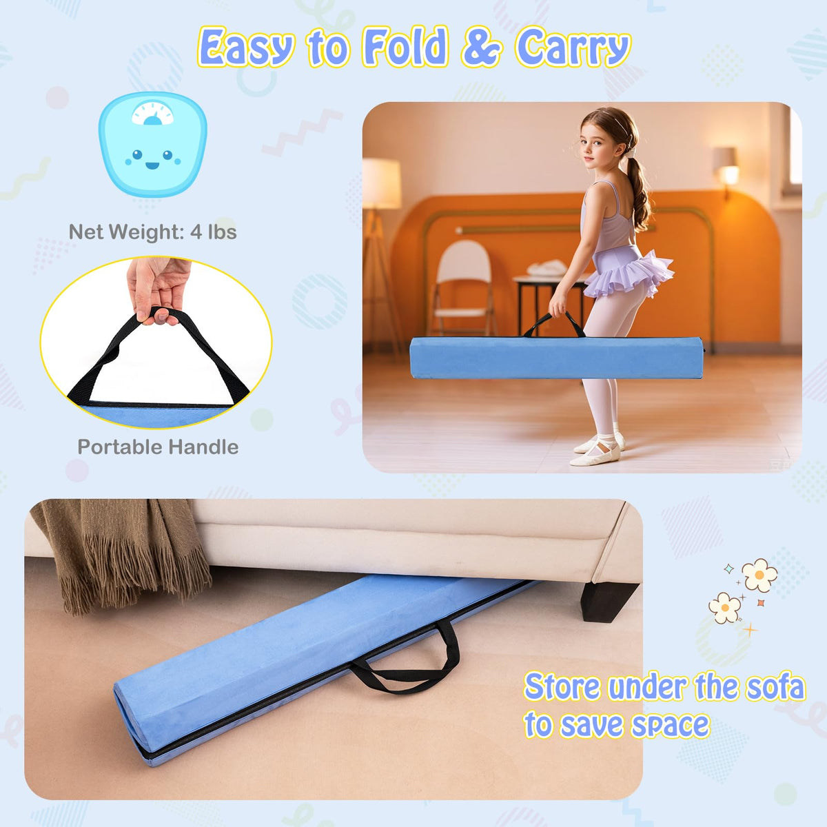 GYMAX 7FT Folding Balance Beam, Portable Floor Gymnastics Beam with Carrying Handle, Suede Cover