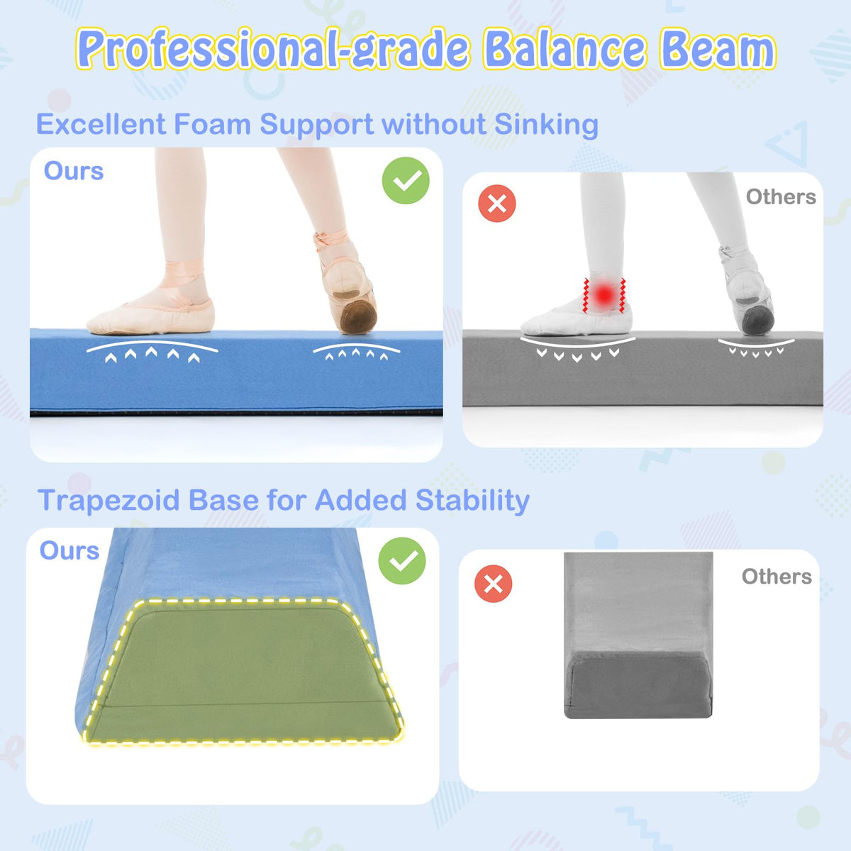 - High Safety & Stability: Our professional-grade gymnastic beam features trapezoid structure and anti-slip bottom to increase the stability and avoid any tipping. Besides that, the excellent foam support maintains its shape and does not sink even under the pressure of repeated training sessions.