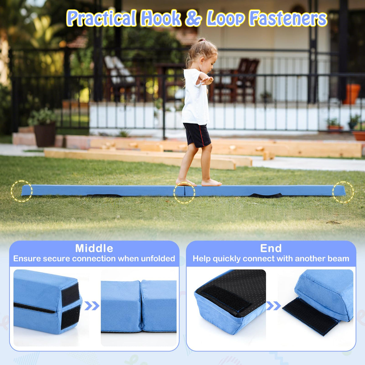- Functional Connectors: There are practical hook and loop fasteners along the middle and end of the balance beam. The middle ones ensures secure connection when the beam is unfolded. Additionally, the end ones helps quickly connect with another beam to extend the beam's length.