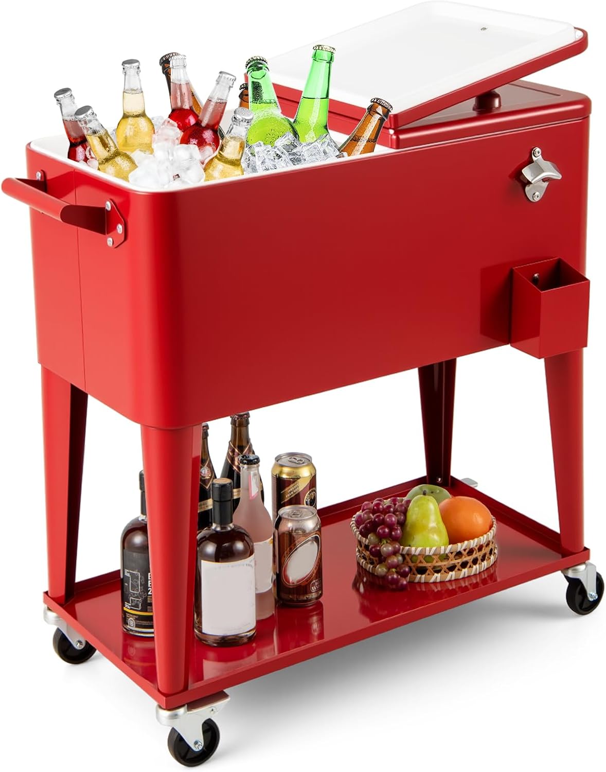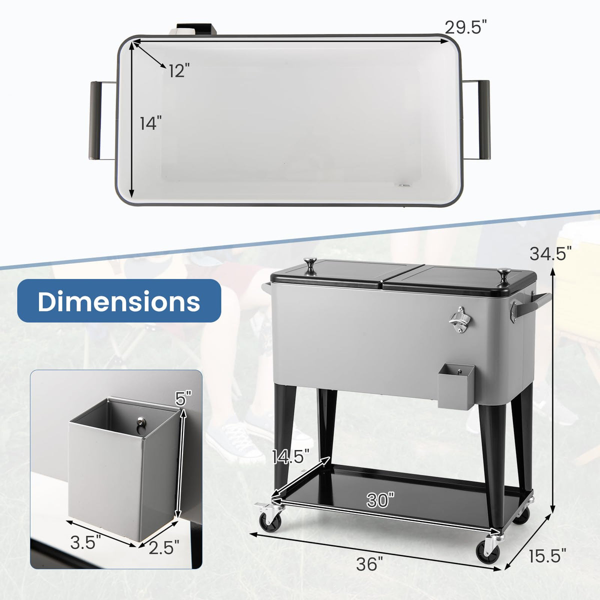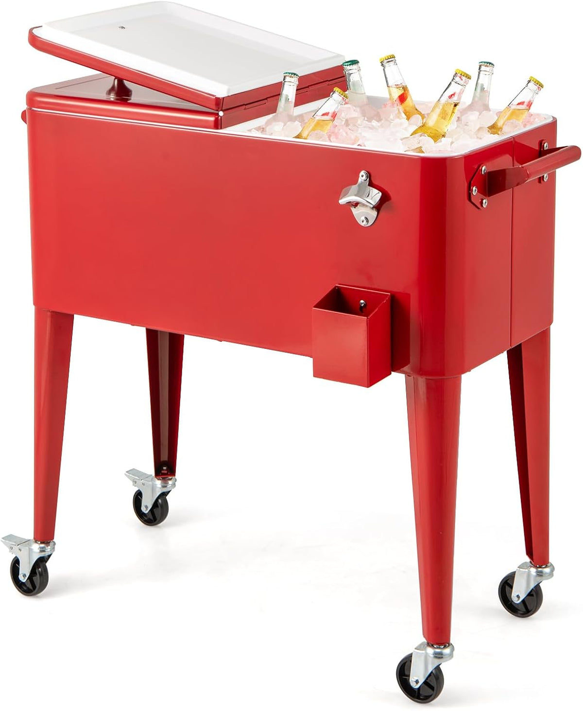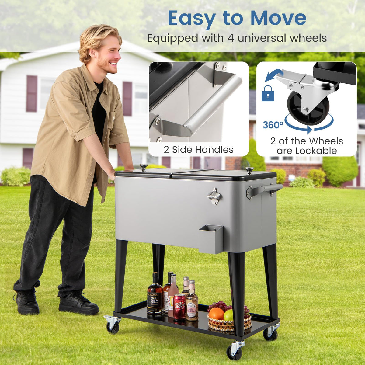 GYMAX 80 Quart Rolling Ice Chest Portable Patio Cooler with Locking Wheels