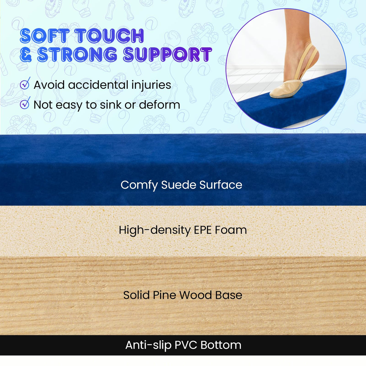 - Soft Touch & Strong Support: Crafted from high-density EPE foam and solid pine wood base, this gymnastic balance beam offers a firm yet comfortable surface for young athletes. Plus, the comfy suede surface provides an excellent grip to prevent slips.