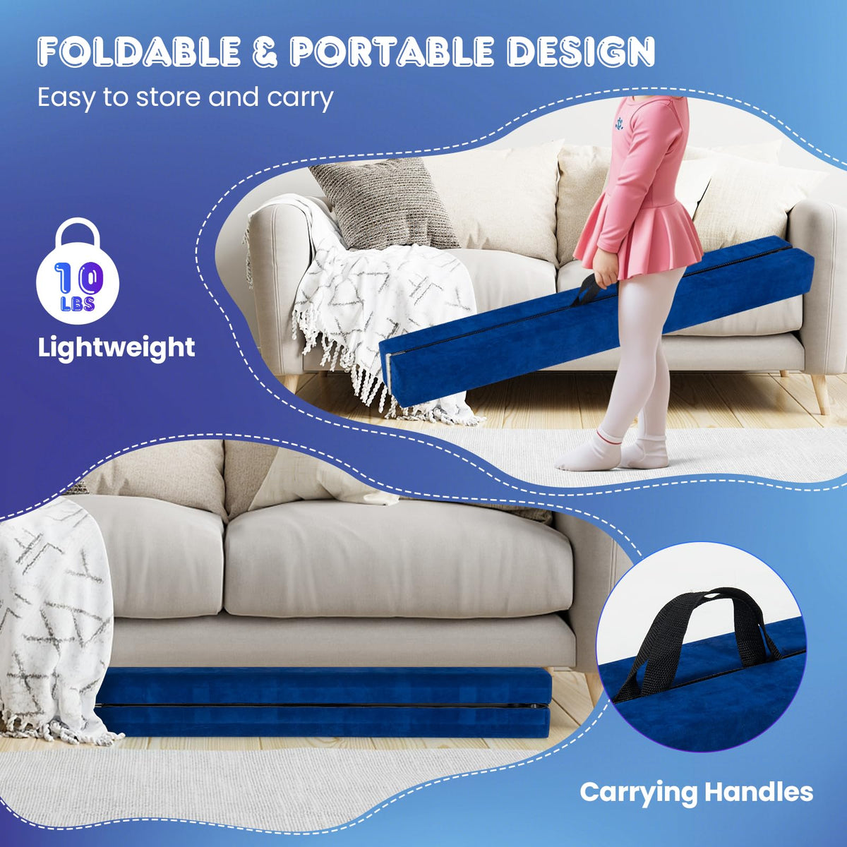 GYMAX 8FT Folding Balance Beam, Foam Gymnastic Beam with Solid Wood Base, Carrying Handle & Anti-Slip Bottom for Kids Teens