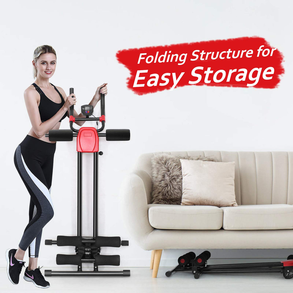 - 【Smart LCD Display & Folding Structure】The smart LCD display on the handle clearly shows count, time, calories and speed. With LCD monitor, you can easily keep track of your progress and physical condition. Besides, GYMAX ab machine is foldable, make it easy to store.