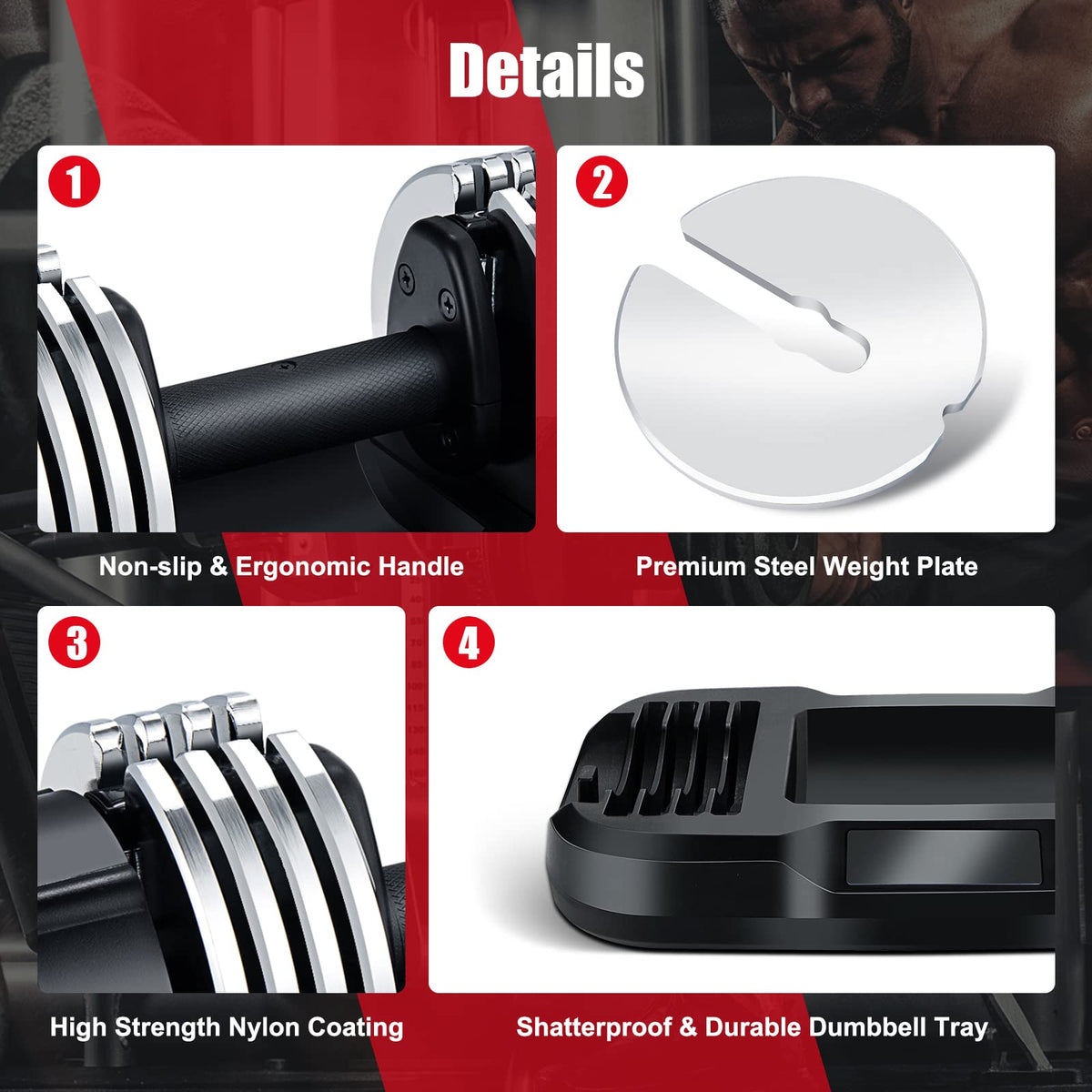 GYMAX Adjustable Dumbbell, 5-25LBS Single Dumbbell Set
