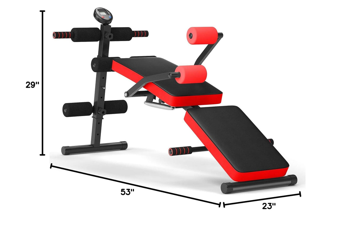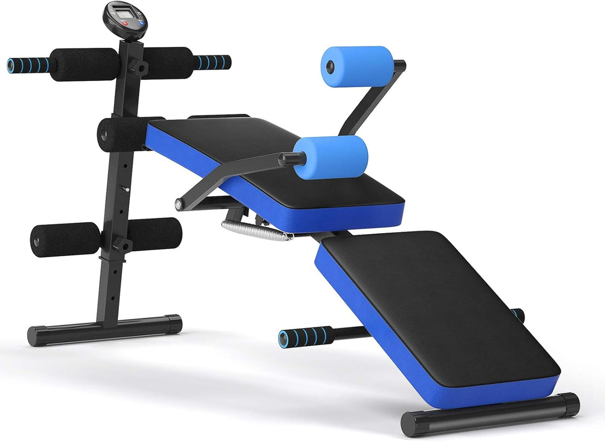 GYMAX Adjustable Sit up Bench, Folding Slant Weight Bench with LCD Monitor for Full Body Workout