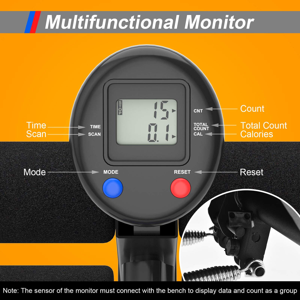 - 【LCD Monitor】This folding weight bench is equipped with a clear and multifunctional monitor which allow you to directly see your exercise data while training, such as time, count, total count and calories. And the operation is quit easy for better using experience.