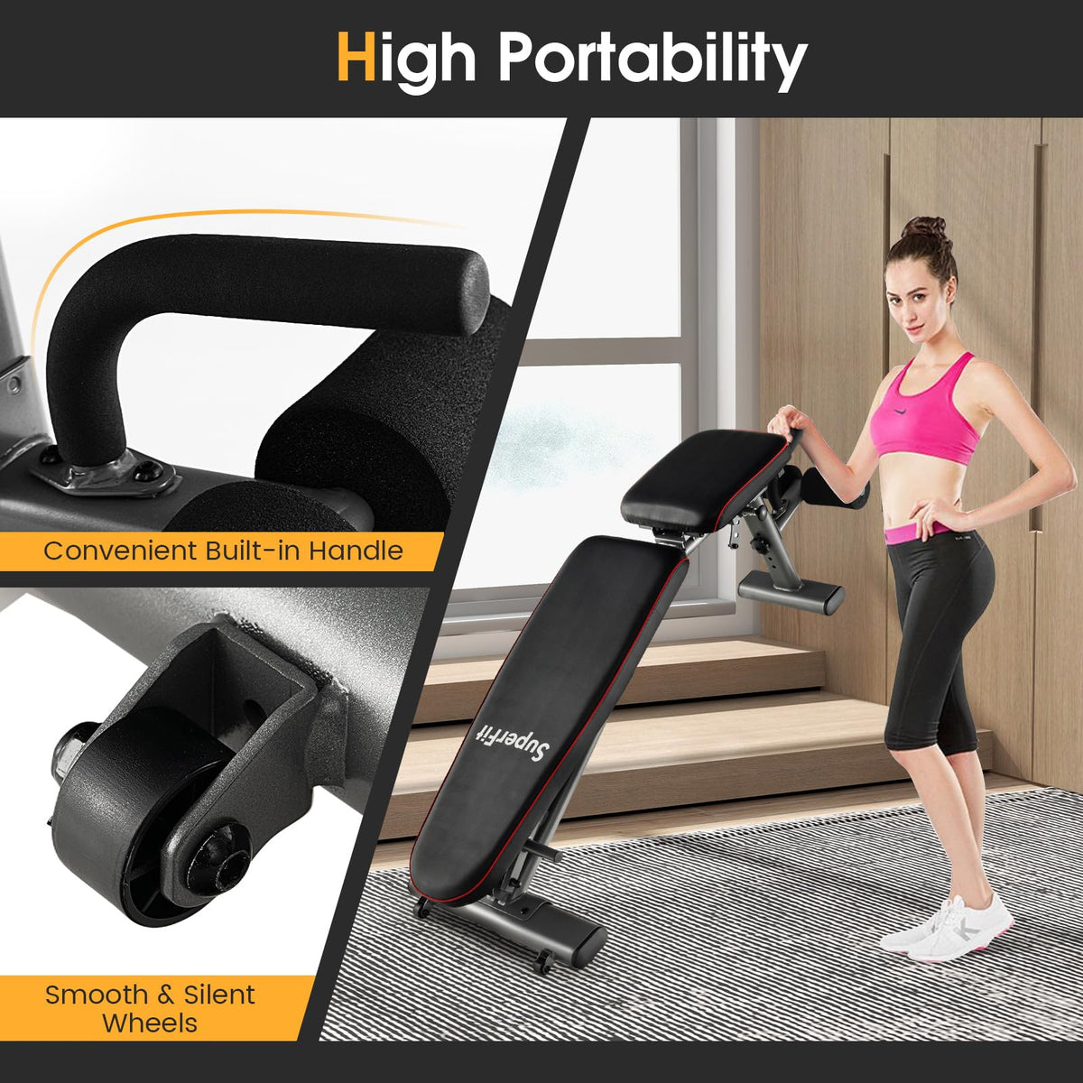 - Easy to Move: Equipped with built-in handles and smooth wheels, this exercise bench is effortless and quiet to move and relocate, leaving you no worries about disturbing neighbors downstairs.