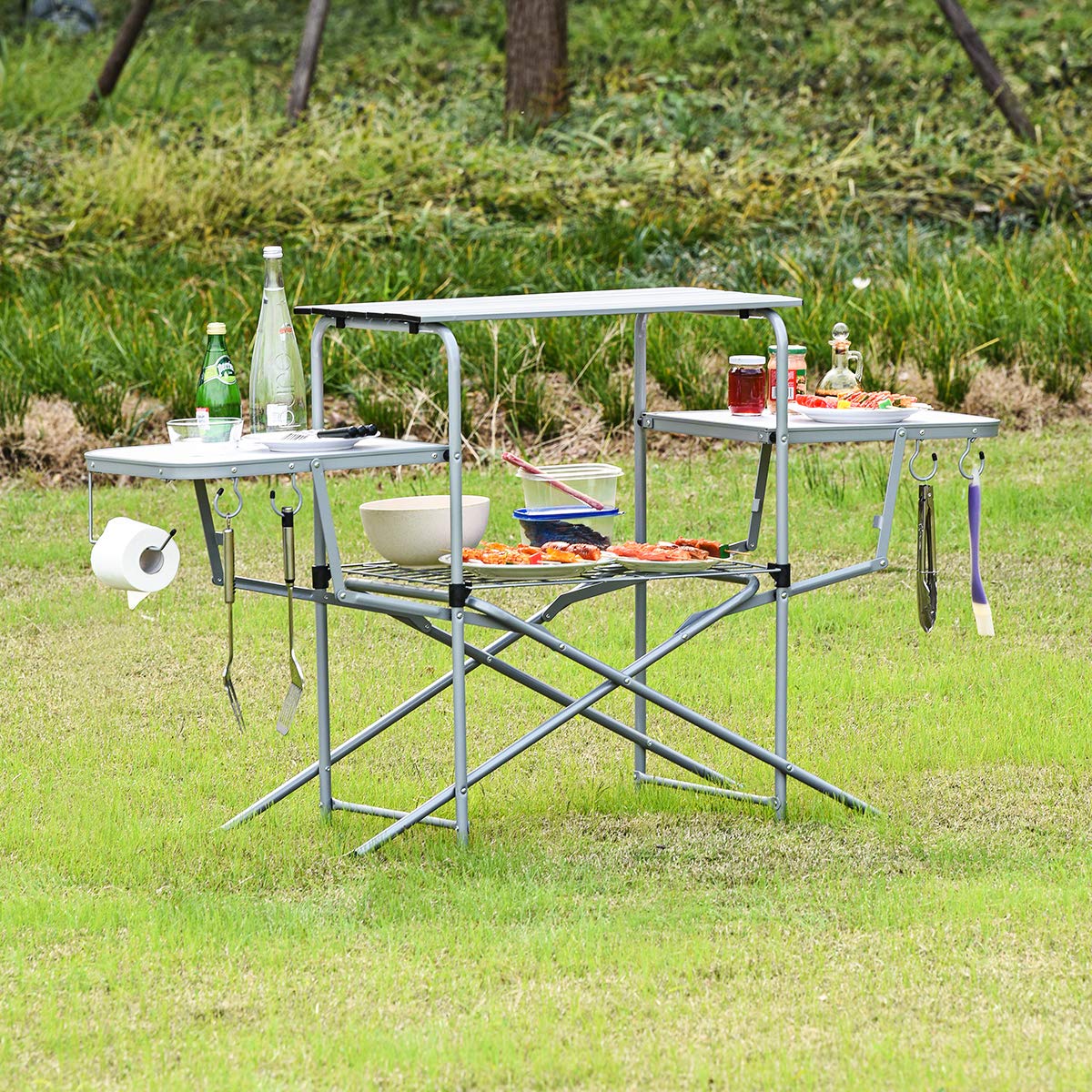 - 【One-piece Foldable Design】Setting up and breaking down easily with its one-piece foldable design, GYMAX grill table is super convenient for you to use outdoor, leaving you no worries of setting up camping kitchen.