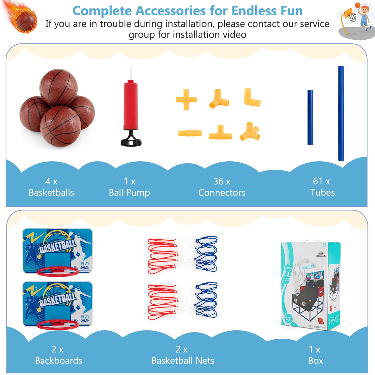1 x Kids Basketball Game + 4 x Basketballs + 1 x Inflation Pump + 1 x Instruction
