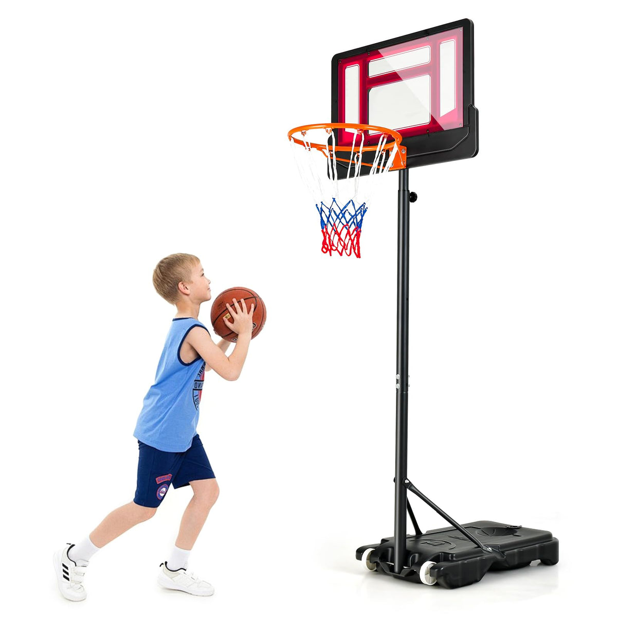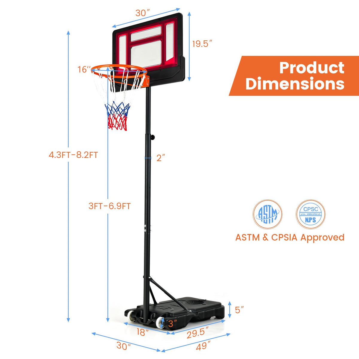 GYMAX Basketball Hoop, Adjustable Height 4.3-8.2 FT Basketball Goal System with Shatterproof Backboard