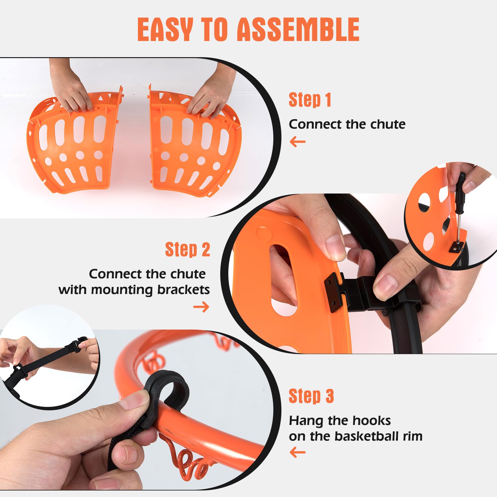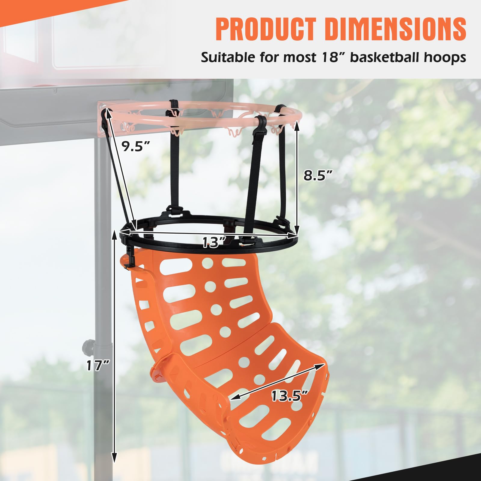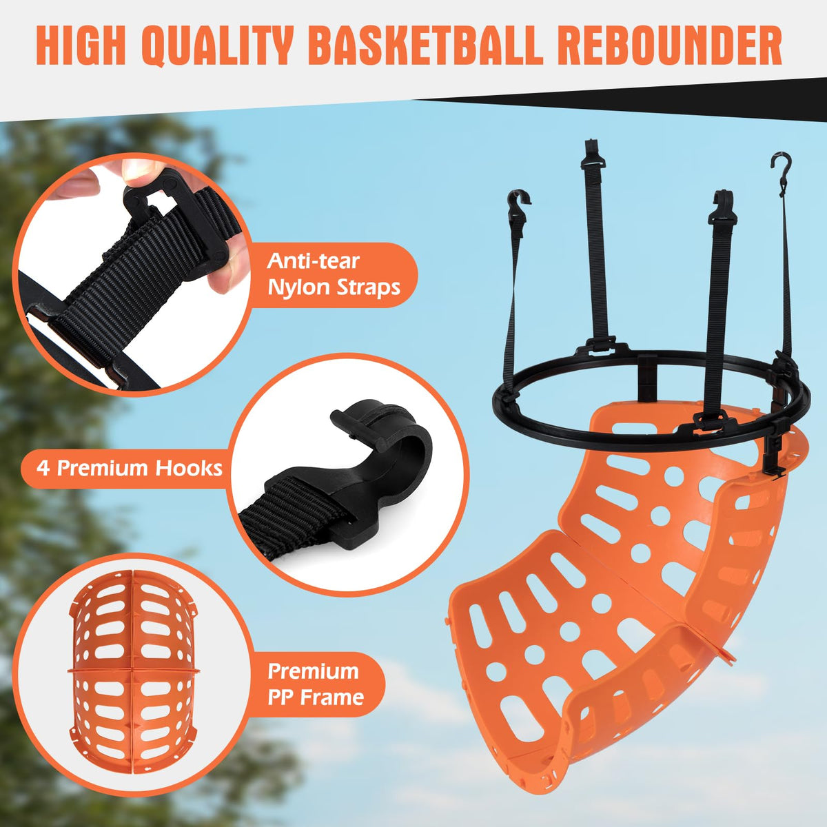 This lightweight basketball rebounder boasts an easy-to-reach ball return system that maximizes your shooting efficiency by ensuring you never have to waste precious practice time chasing after loose balls. The chute is highly adjustable due to its' full 360° rotation, allowing you to direct the ball to any spot on the court with precision. Additionally, the PP frame is impact-resistant and designed for long-lasting service, making it a reliable addition to your training setup. It also features anti-tear nylon straps and four premium hooks that provide a stable and secure fit on most 18" basketball hoops. Whether you're practicing at home, in a school gym, or at a community park, this rebounder is a must-have for any serious basketball player looking to improve their skills.