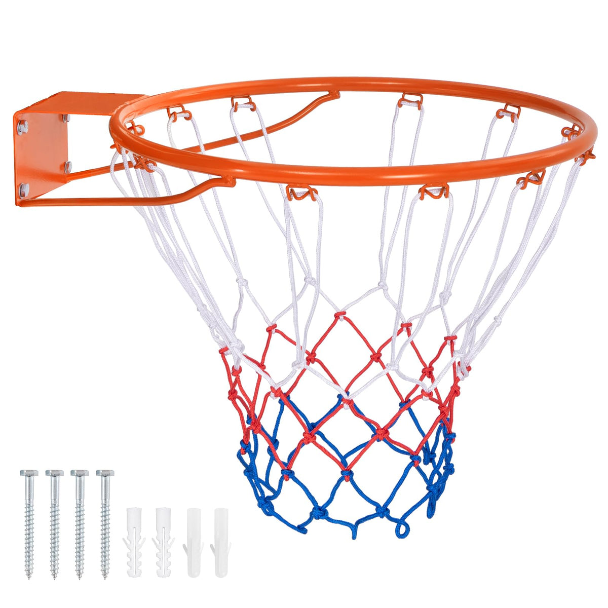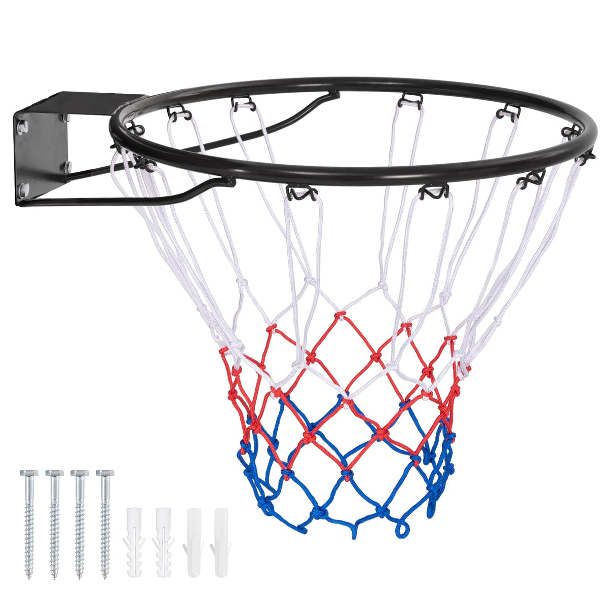With an inner diameter of 18/15 inches, this basketball rim is designed to offer your thrilling gameplay experience. Made from robust metal pipes that have been treated with powder coating, this basketball hoop replacement is built to last. Its sturdy construction, complete with an all-weather net and secure hooks, makes it suitable for both indoor and outdoor use. The rim goal can be mounted on walls, doors, or backboards, allowing you to create a basketball court in any space. The simple assembly process with included hardware makes installation quick and easy.