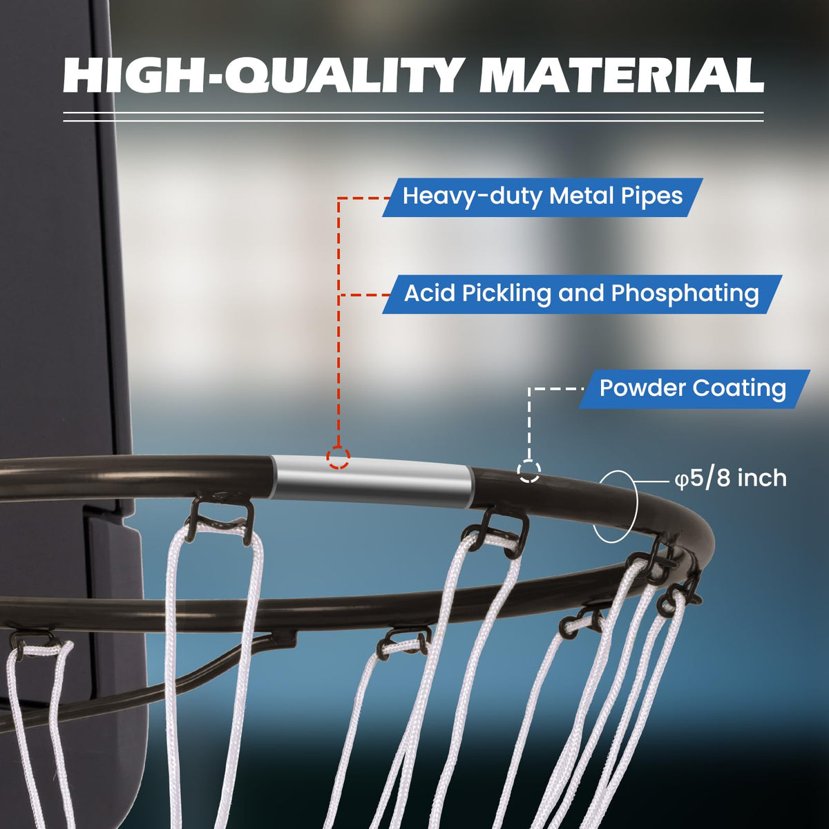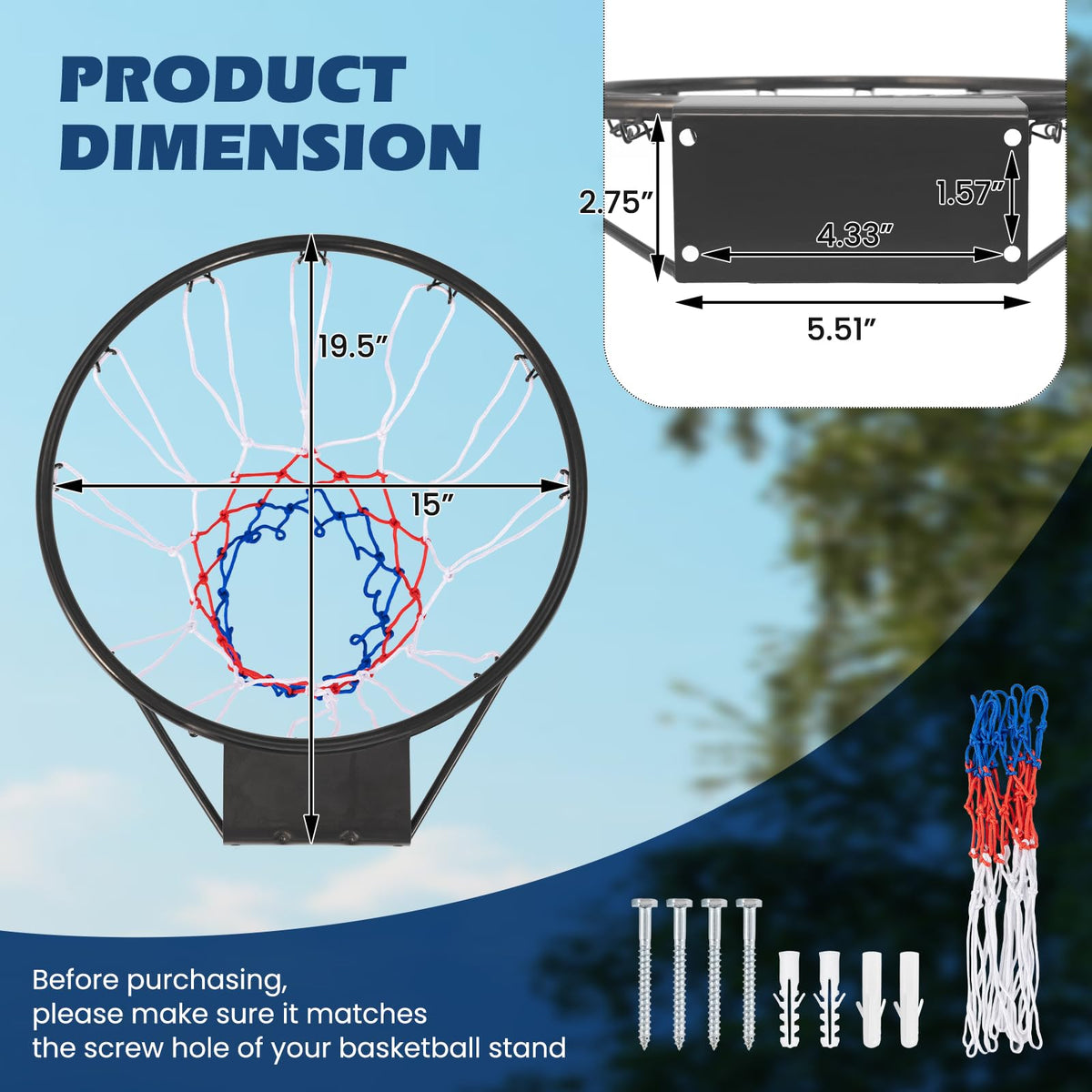- All-weather Construction: Crafted from powder coated steel pipes, the basketball rim is resistent to rust and bending throughout intense gameplays. Plus, our replacement basketball rim comes with a weather-resistant net, making it suitable for indoor and outdoor use.
