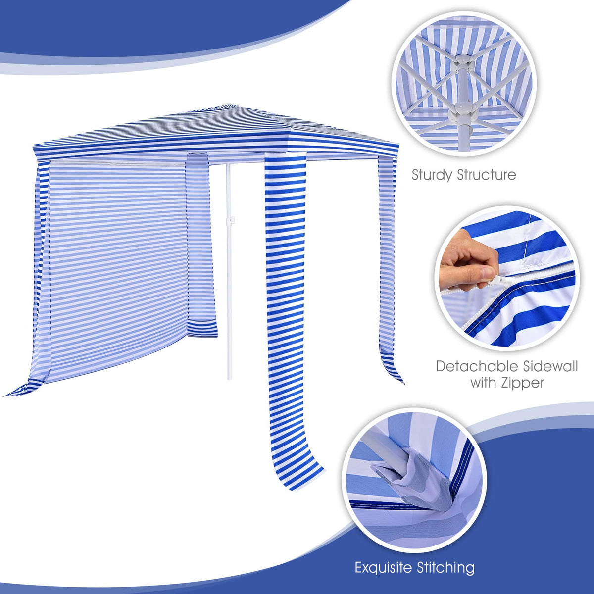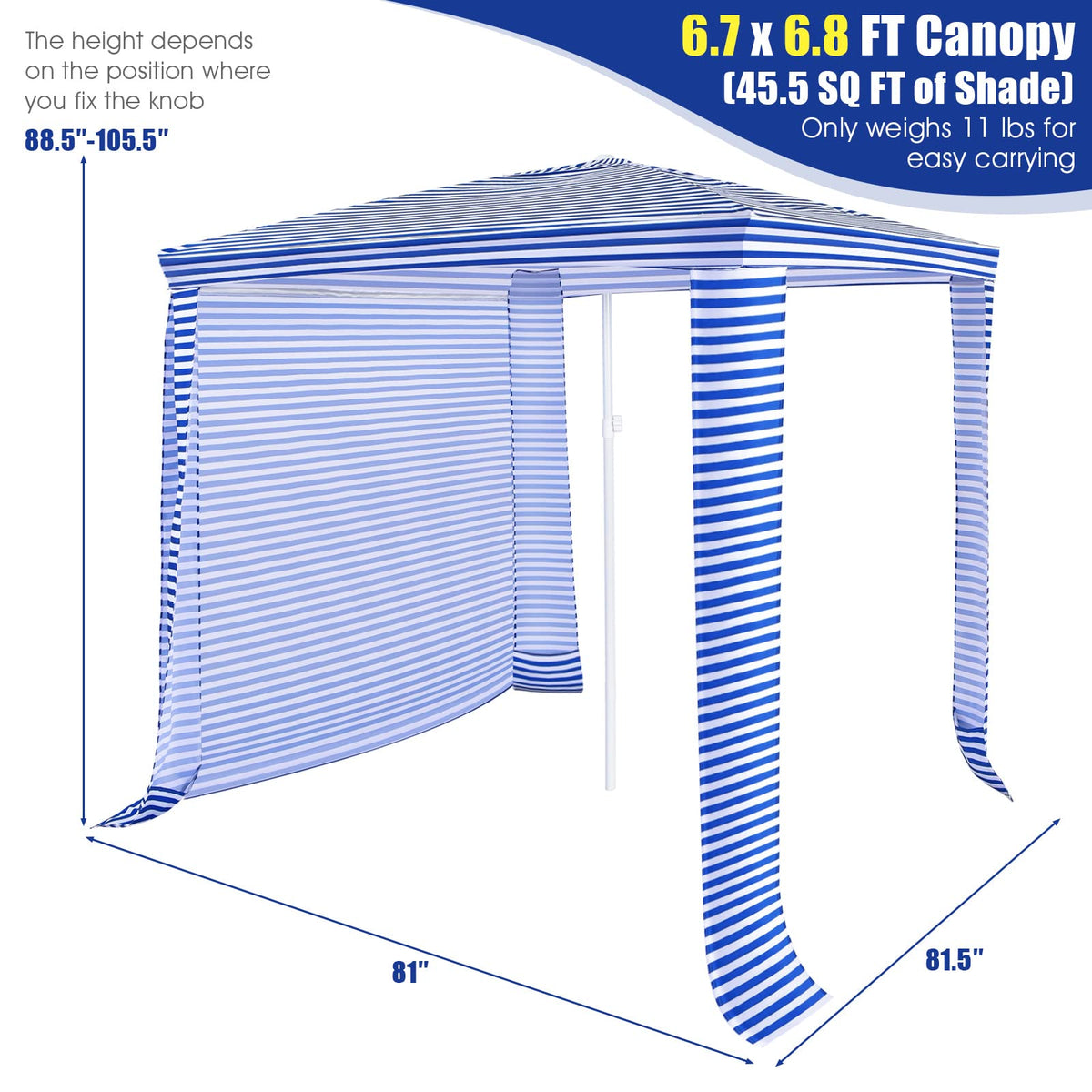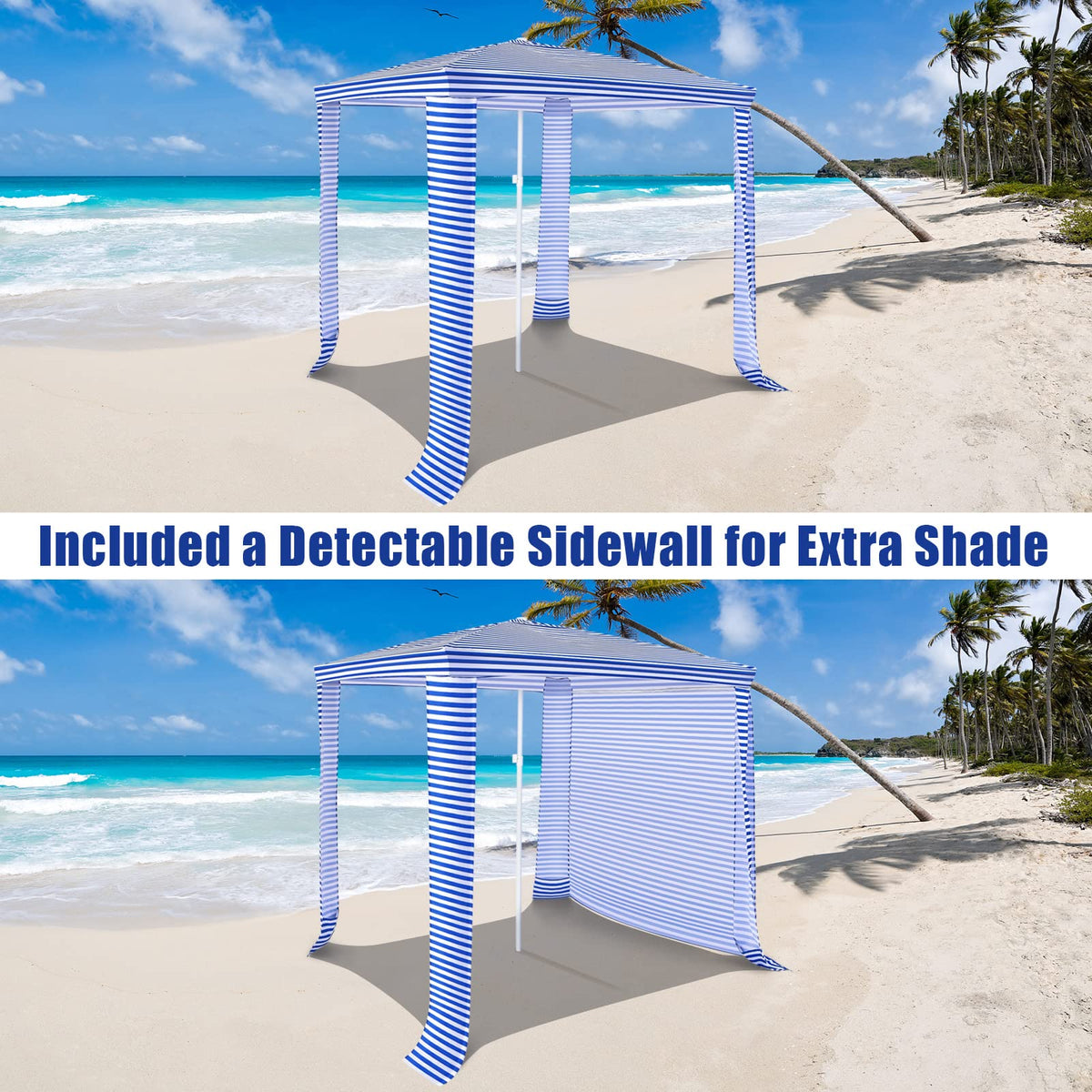 GYMAX Beach Cabana, 6.7 FT x 6.8 FT Height Adjustable Beach Umbrella with Detachable Sidewall & Carry Bag