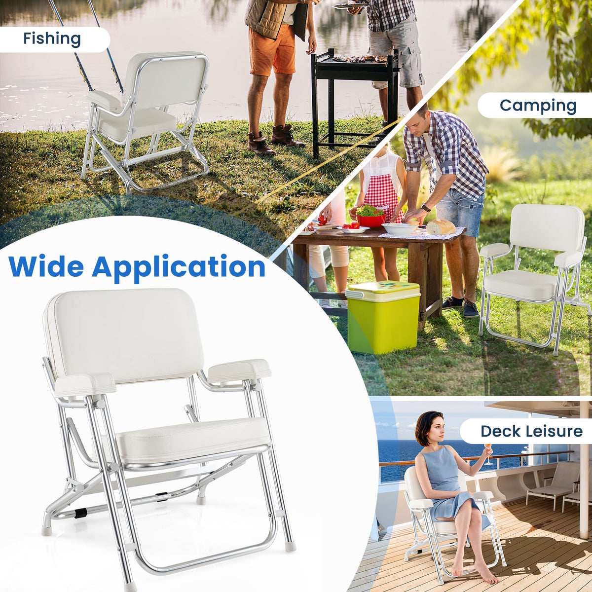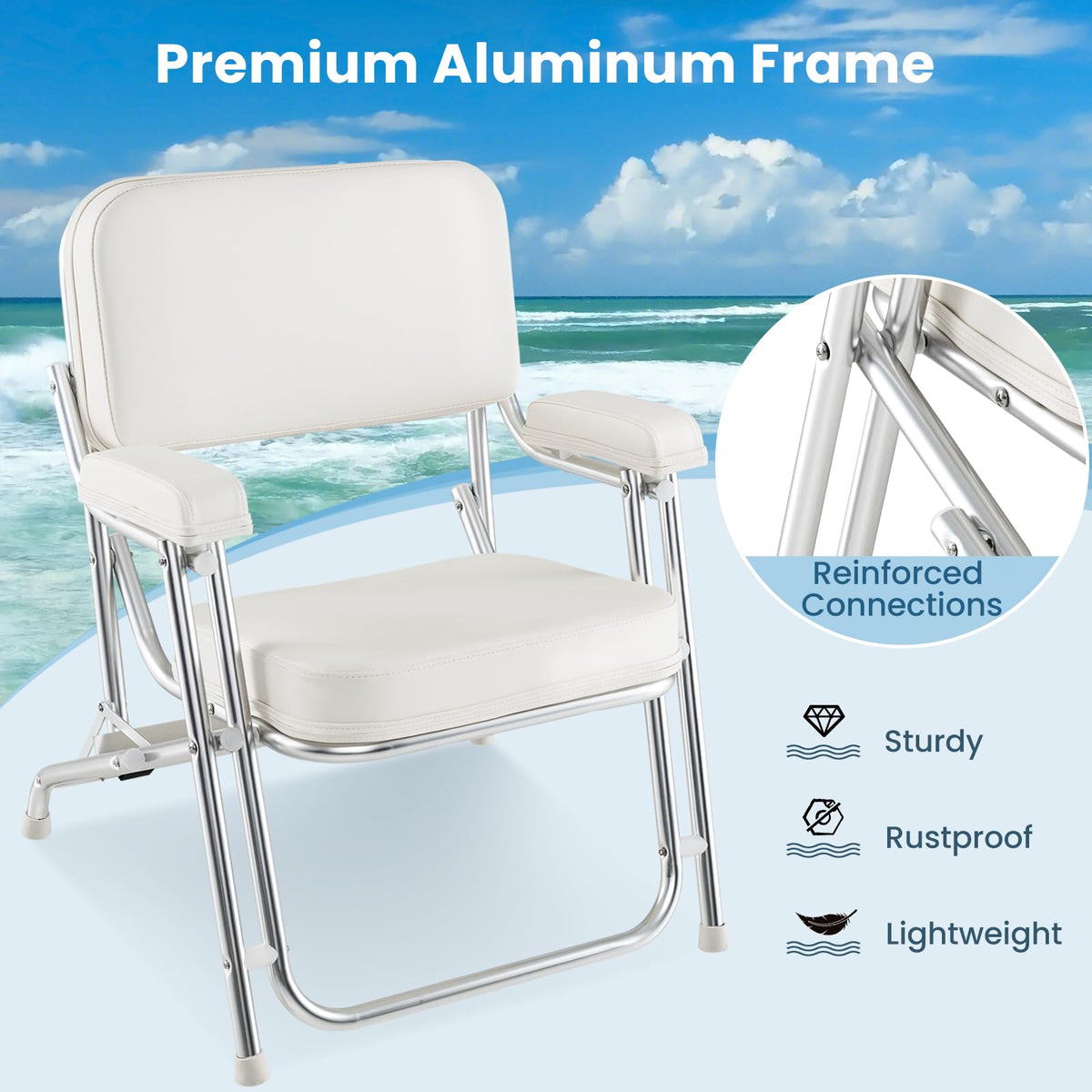 GYMAX Boat Deck Chair, Aluminum Folding Boat Chair with Cushioned Seat & Armrests, Non-Slip Foot Pads