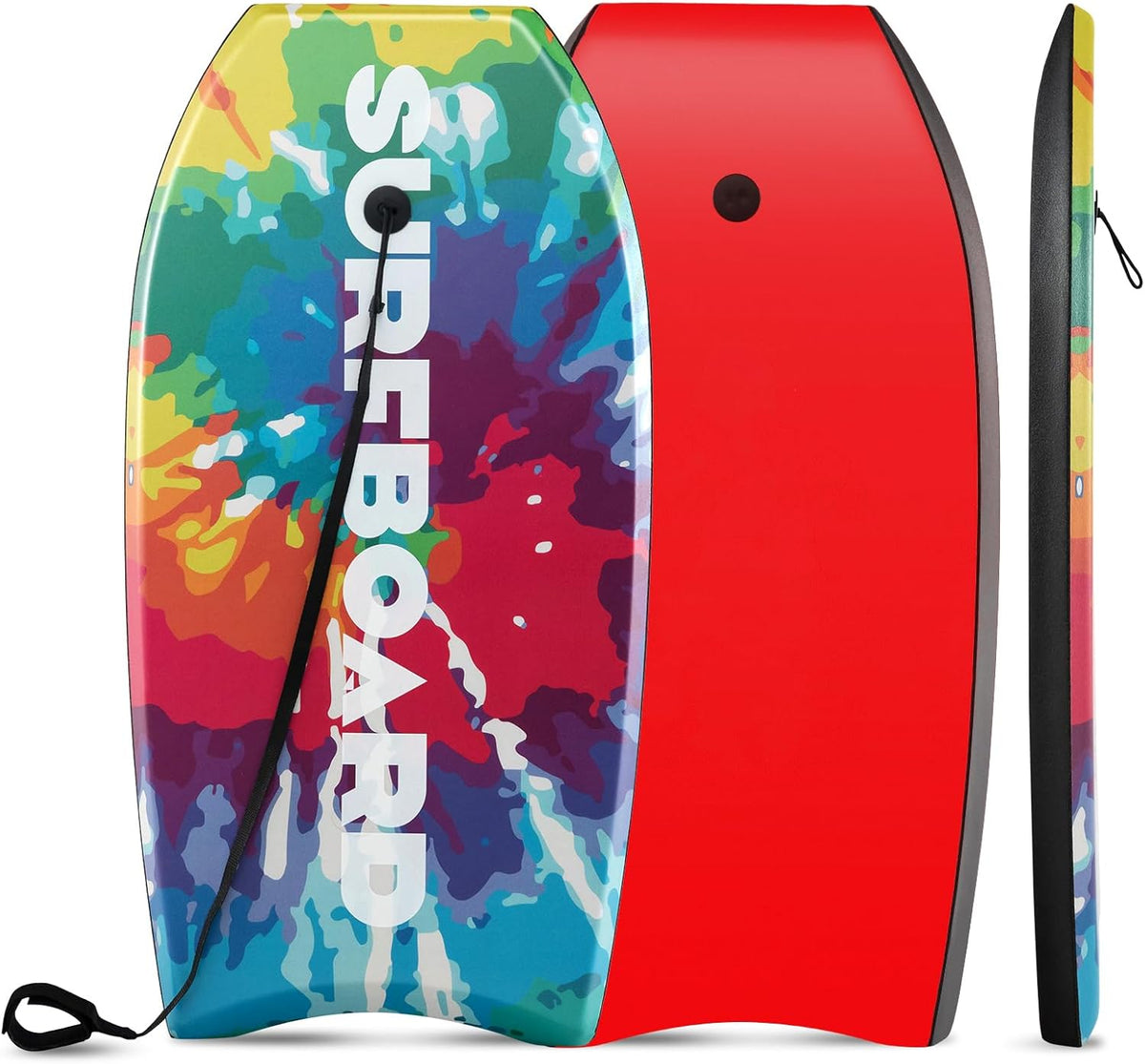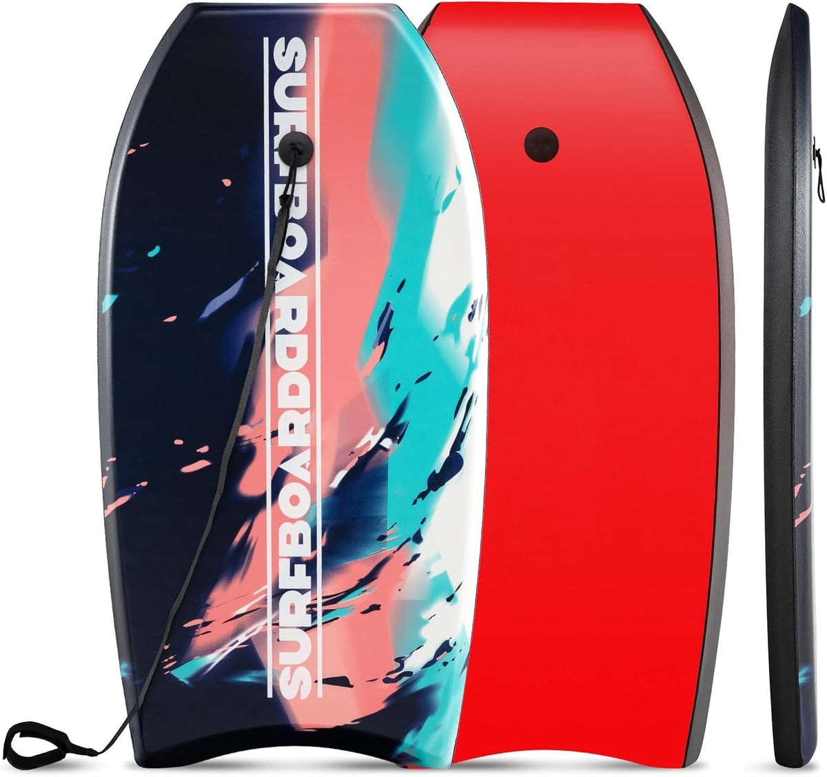 - Sturdy & Reliable Construction: Featuring waterproof XPE deck, GYMAX body board offers you more stable grip to ride waves. The EPS foam core ensures great buoyancy and is not easy to deform. Moreover, heat-laminated treatment is applied to ensure durability and longevity of use.