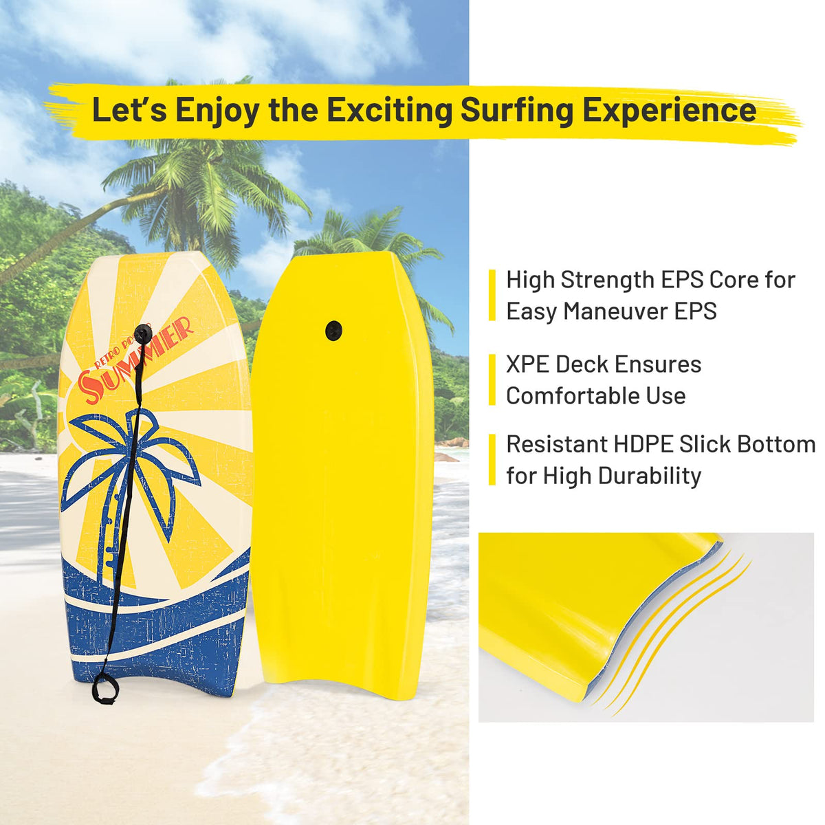 GYMAX Boogie Boards for Beach, 33"/37"/41" Body Board with EPS Foam Core