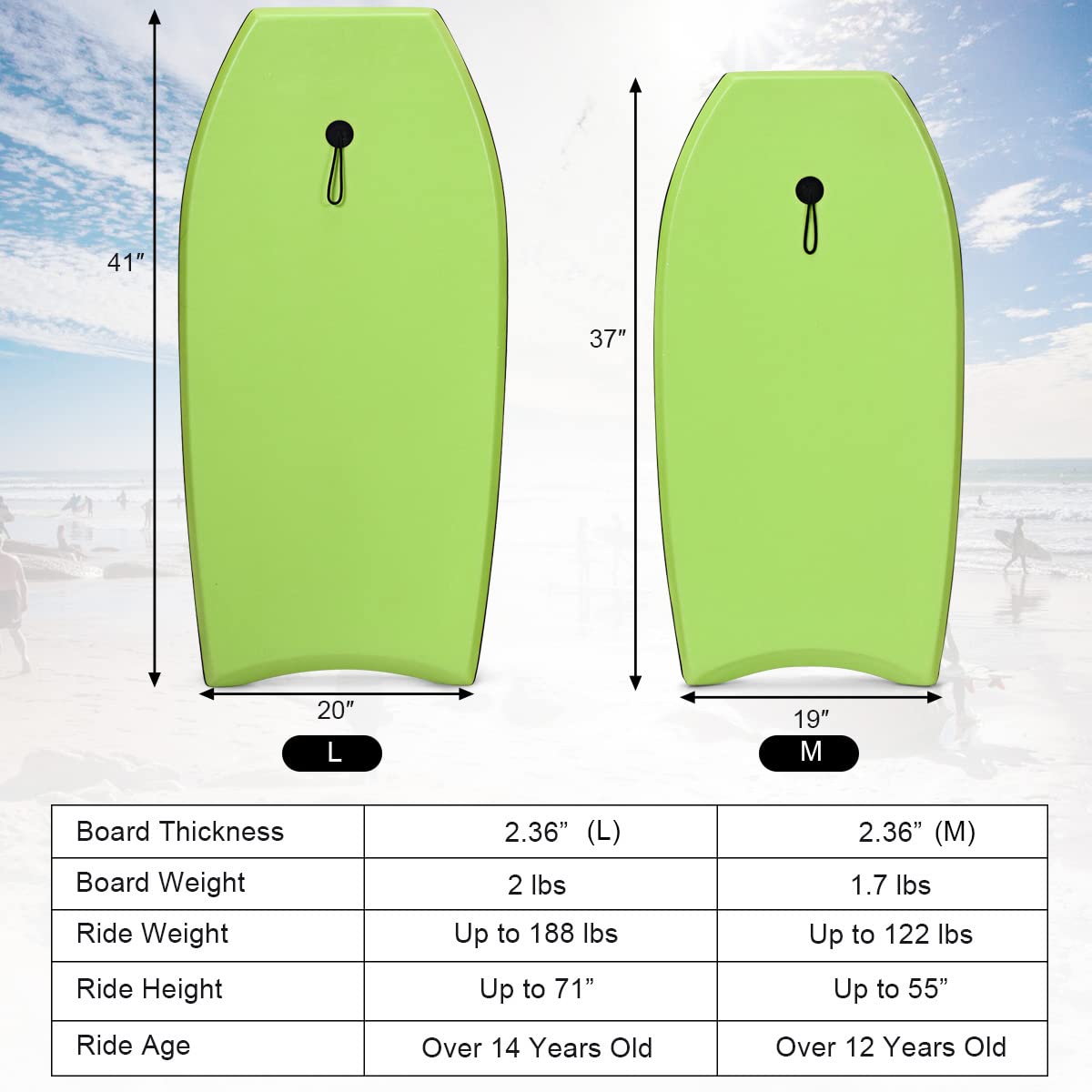 GYMAX 33"/37"/41" Body Board with EPS Foam Core Boogie Boards for Beach
