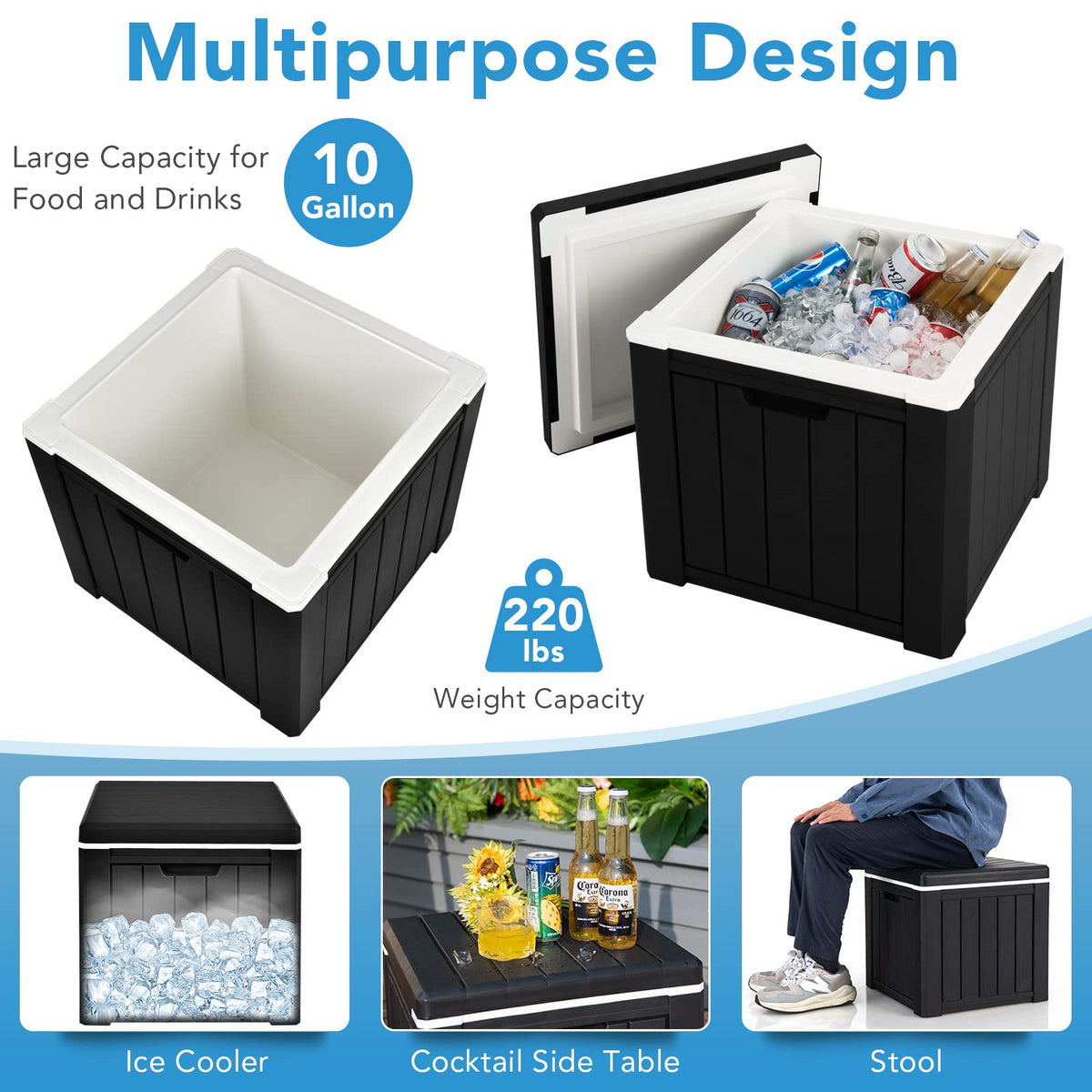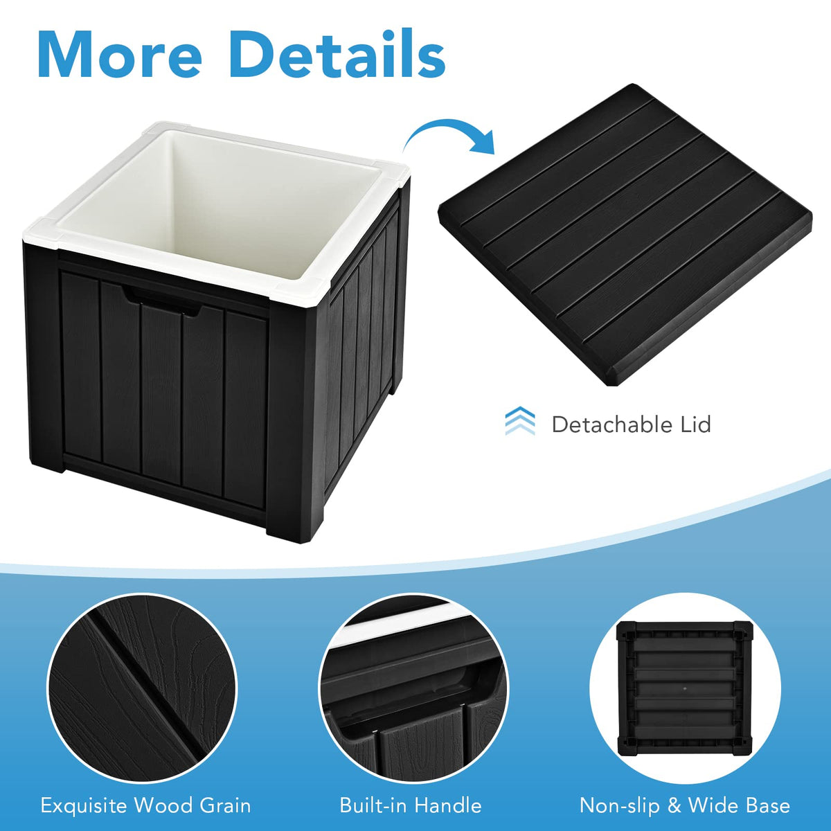 - Wide Application & Dimensions: With 4-in-1 multifunctional design, this ice cooler combines ice cooler, side table, stool and storage basket in one, suitable for small balcony, patio, garden and more. Overall dimension: 17" x 17" x 16" (L x W x H).