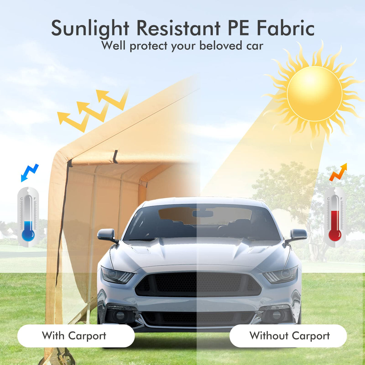 - All Season Car Canopy: Featuring all-weather 130G PE canopy fabric, this carport well protects your beloved car and effectively keeps it away from scorching sunlight and annoying rain. Moreover, the canopy fabric is also rip resistant and anti-scratch, ensuring enduring service life.